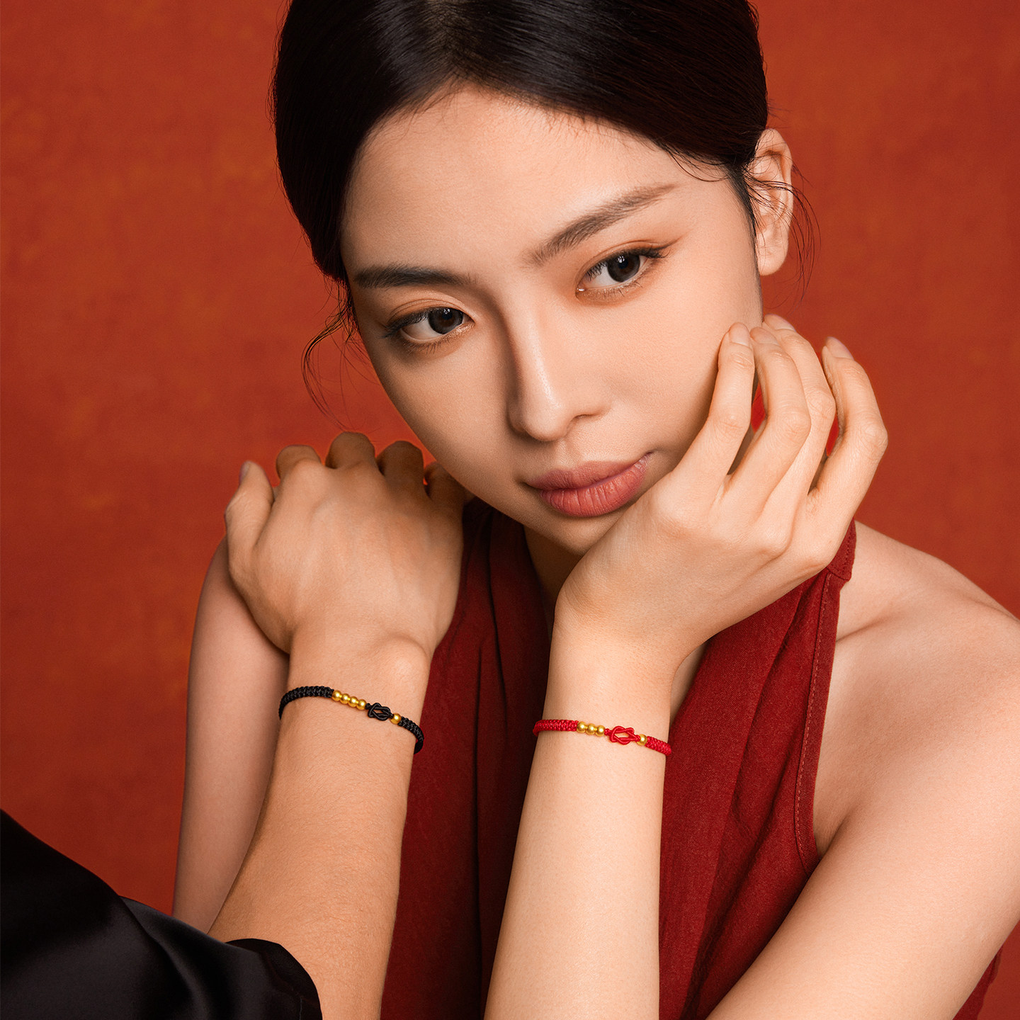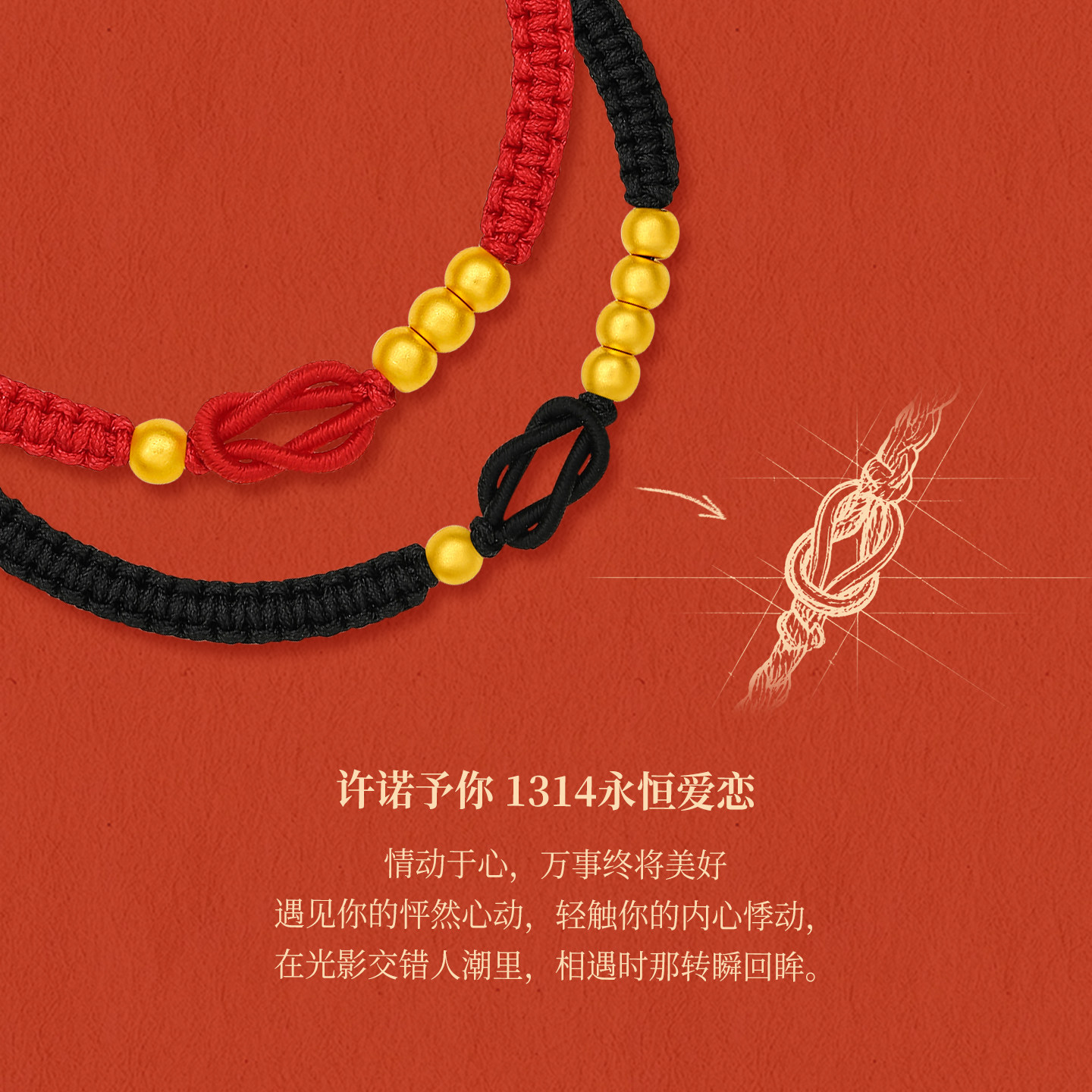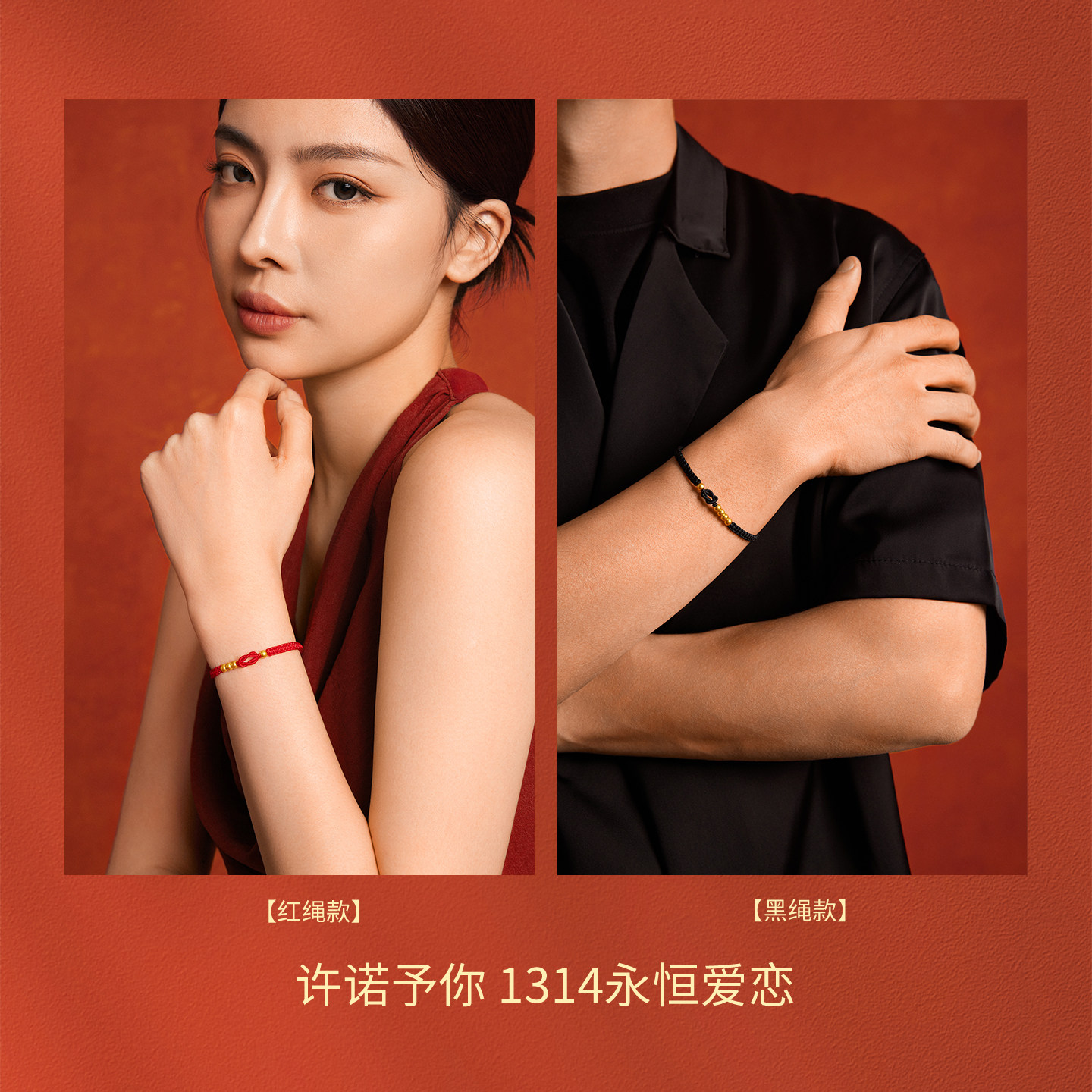 周六福黄金手绳计价足金1314情侣款男女编制手饰送礼圣诞礼物