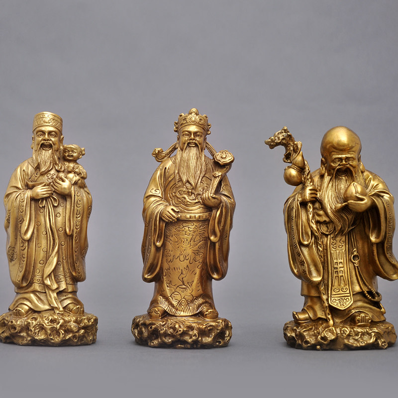 黄铜福禄寿三星摆件招财工艺品客厅电视柜玄关办公桌装饰品礼品