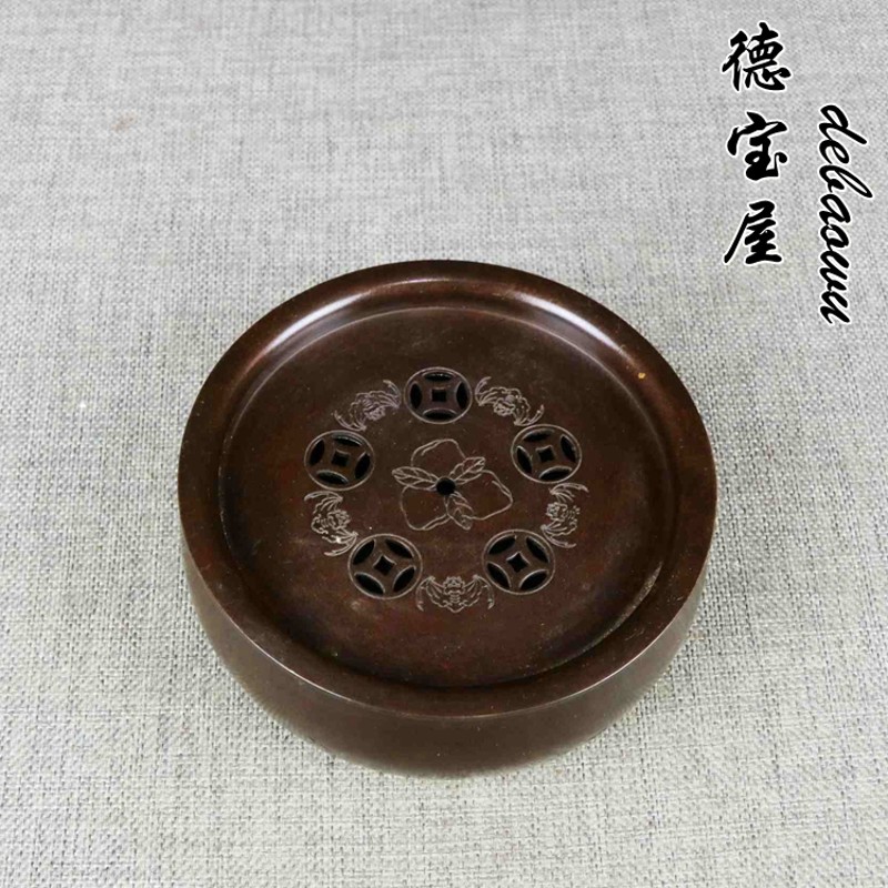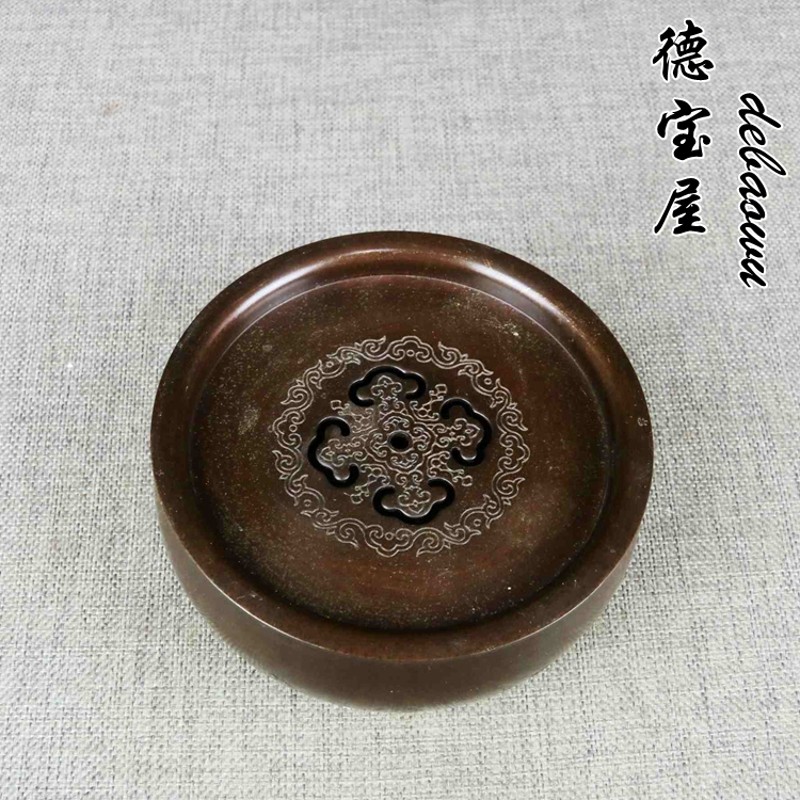 仿古铜茶洗笔洗建水茶钵黄铜带盖水盂干泡壶承茶盘茶渣桶茶杯盆