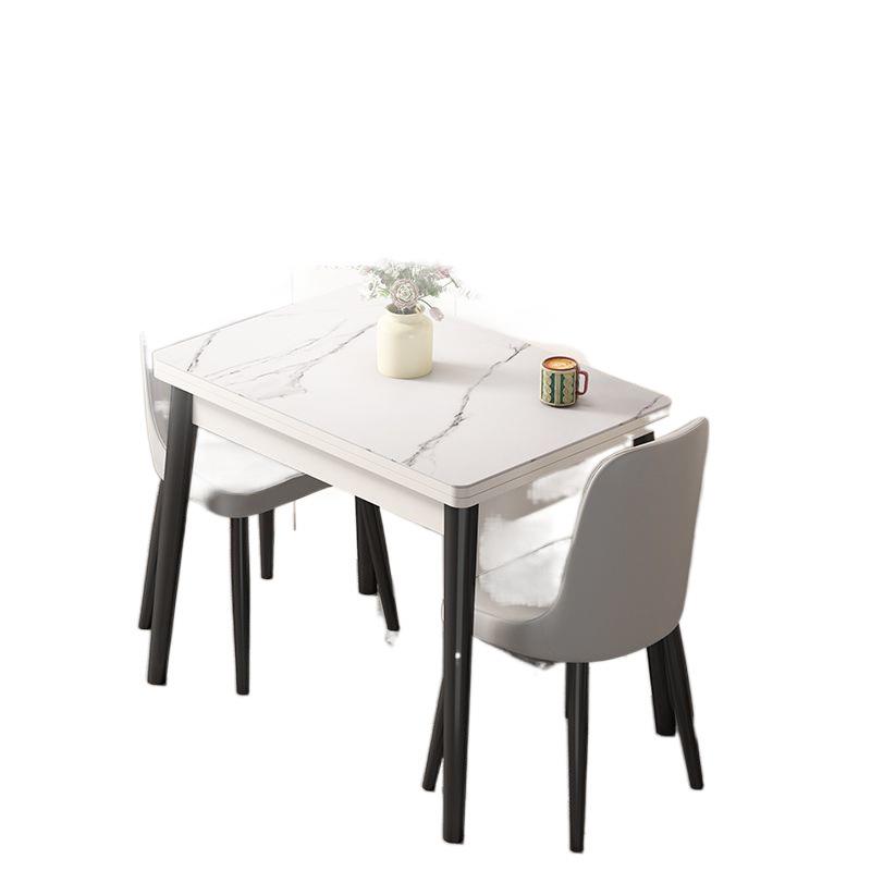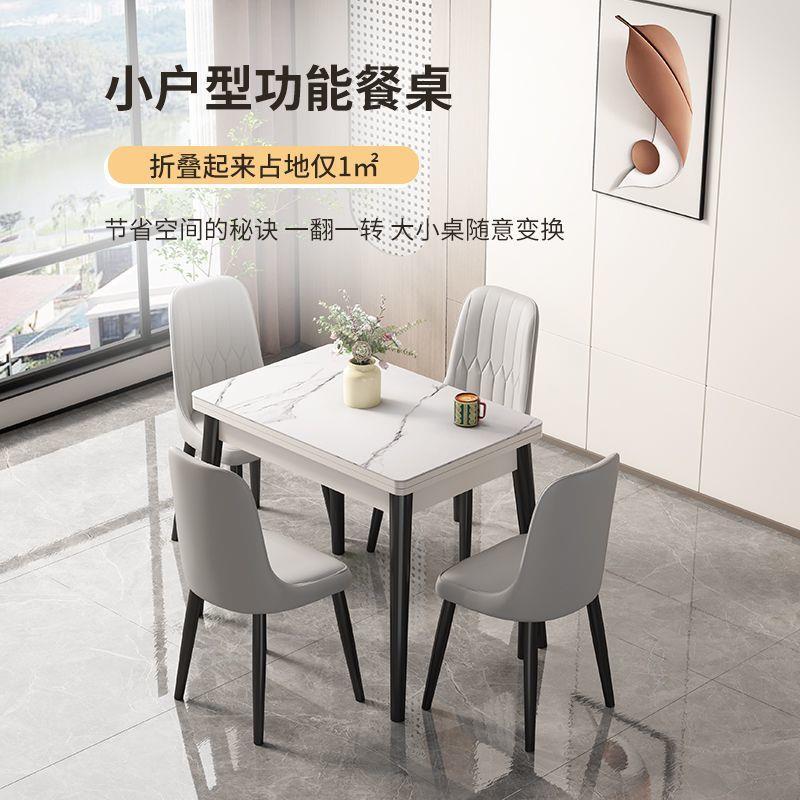 可折叠式伸缩岩板实木餐桌椅组合小户型家用新款吃饭桌子两人客厅