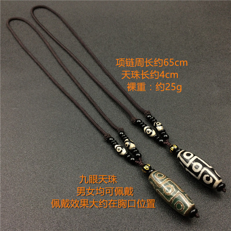 玛瑙石九眼天珠吊坠长款绳子项链戴脖子复古毛衣链挂件男女民族风