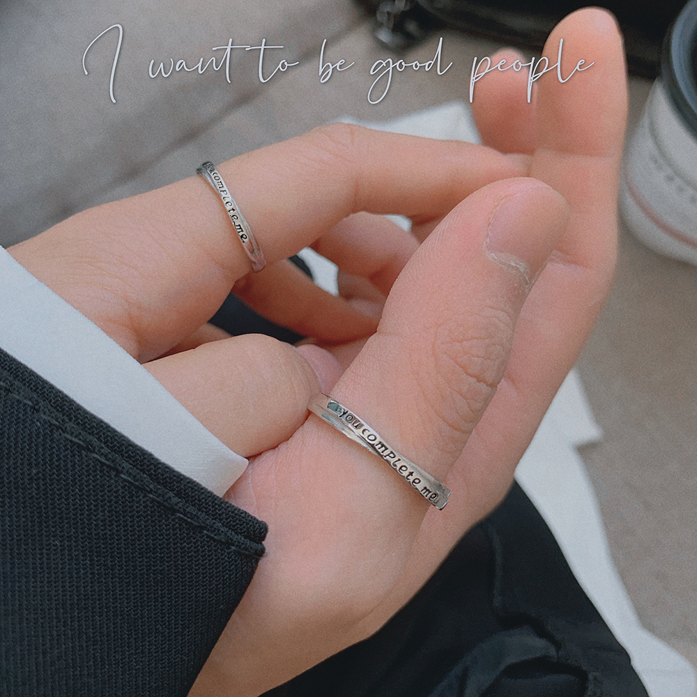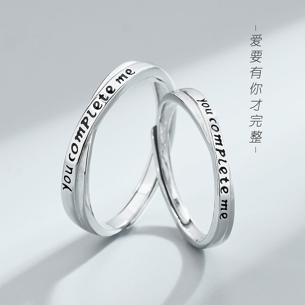 刻字s925纯银情侣戒指小众设计 you complete me对戒男女礼物一对