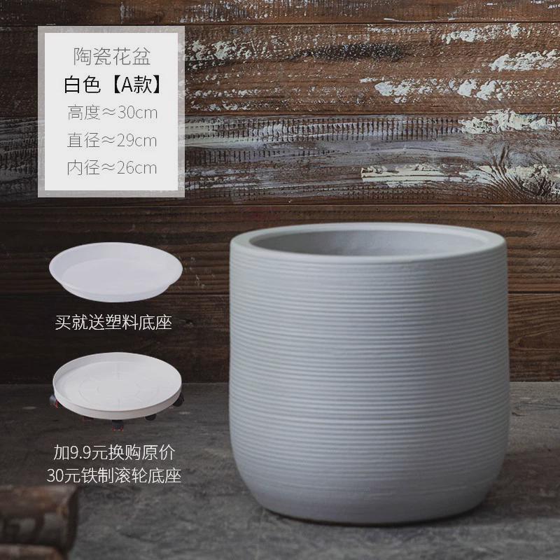 绿植盆栽花盆室内阳台落地花坛庭院水缸装饰品摆件白色陶瓷大花瓶