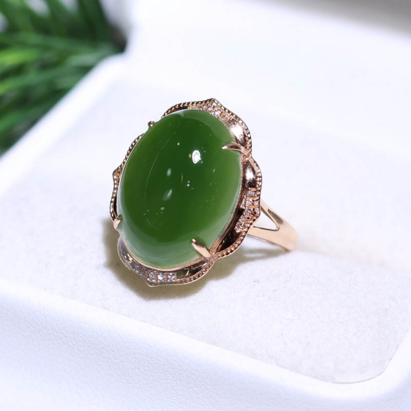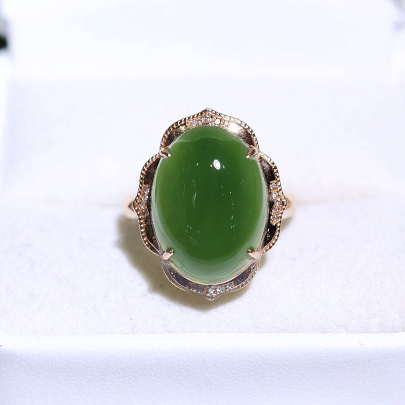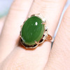 38焕新季天然和田玉戒指女菠菜绿碧玉蛋面镶嵌18k金指环a货送老婆