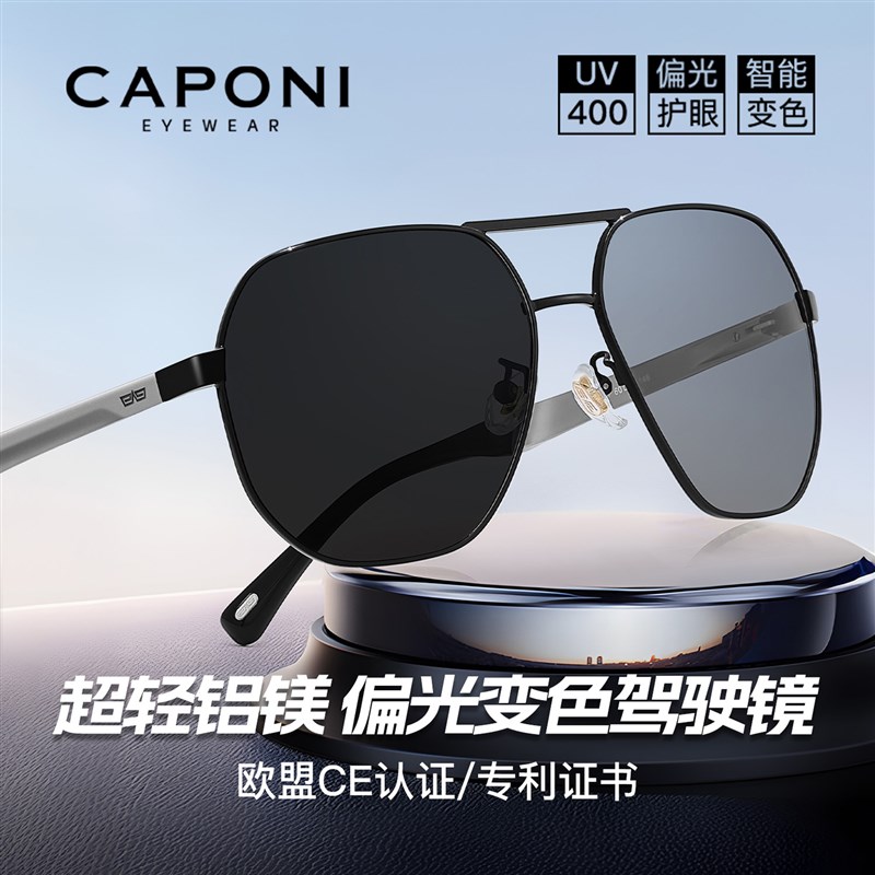CAPONI飞行员变色墨镜男2025新款开车防紫外线偏光镜太阳眼镜