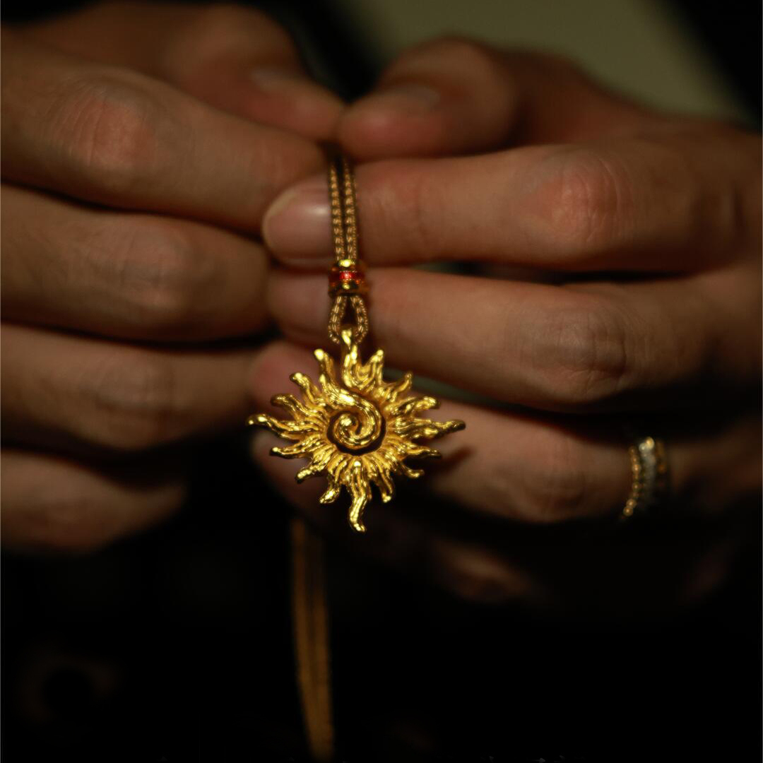 赤日巡天金乌项链新中式黄色金色太阳鸟毛衣链复古轻奢颈链女