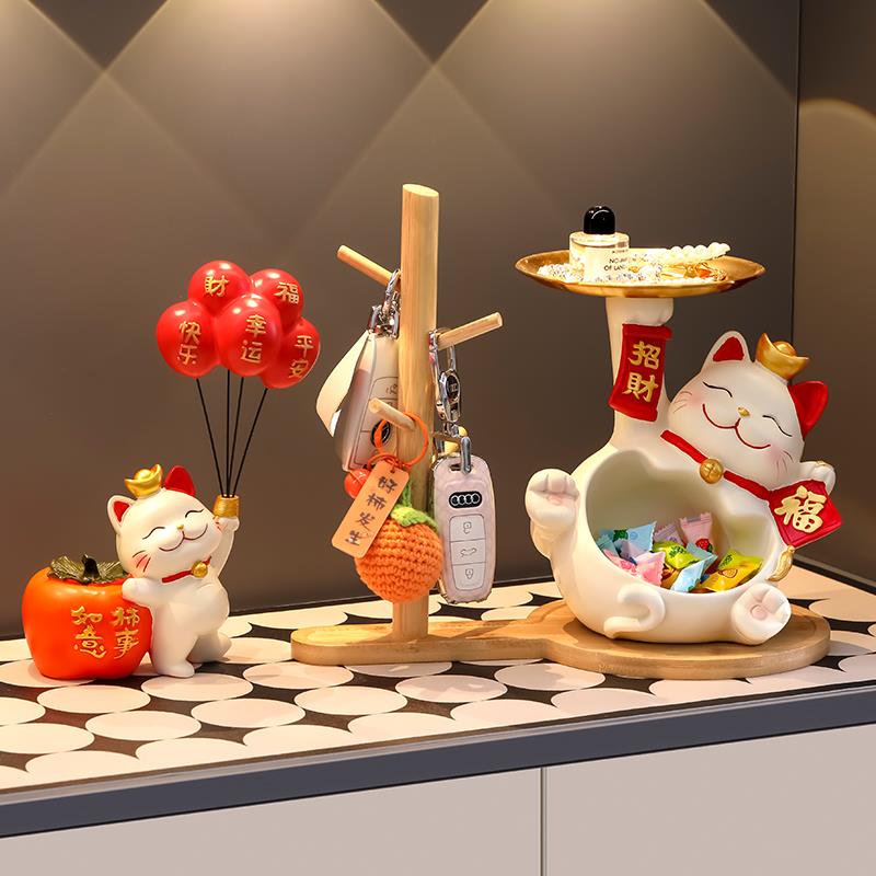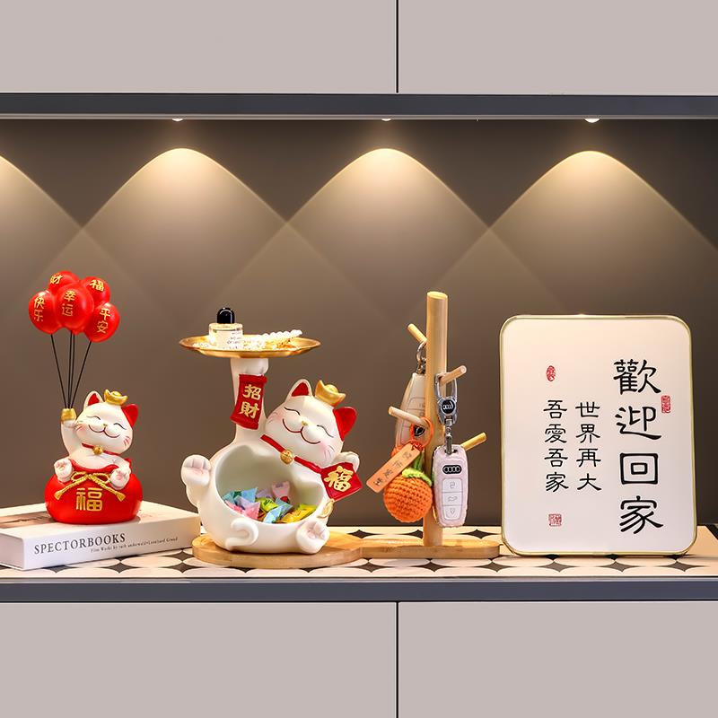 招财猫摆件入户玄关钥匙收纳门口鞋柜客厅装饰品家居乔迁新居礼品