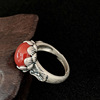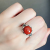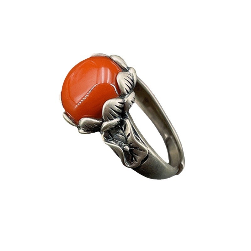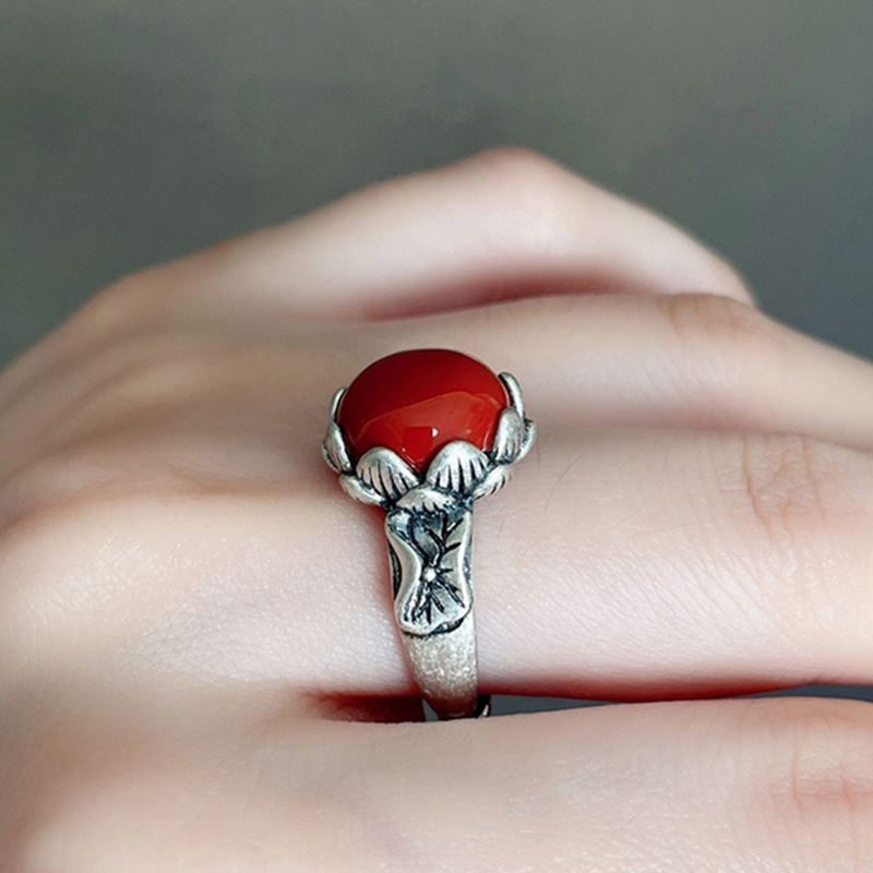 红玛瑙莲花戒指女款小众设计复古国风可调节食指戒送