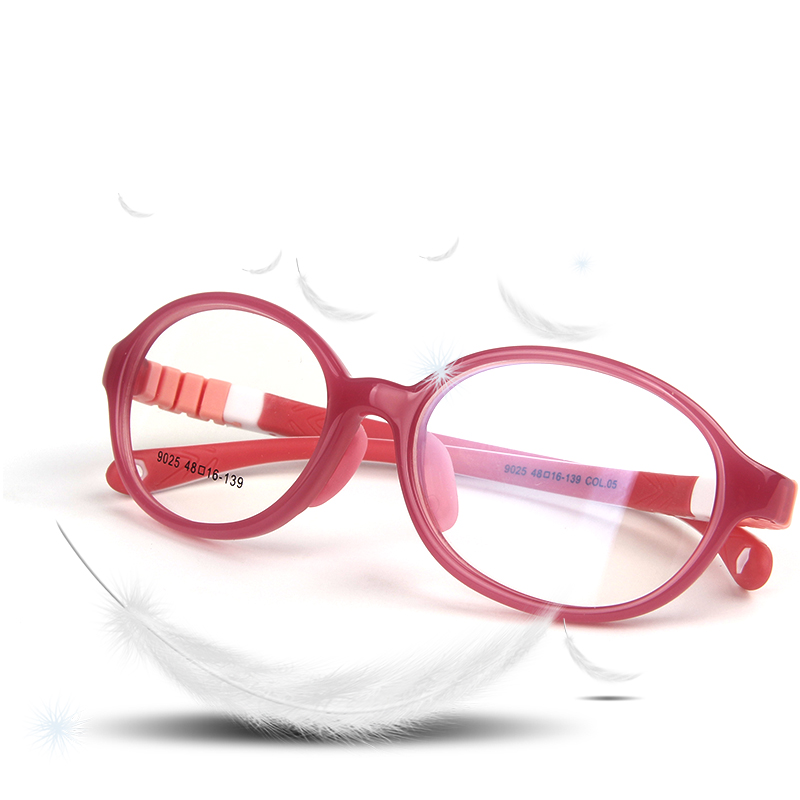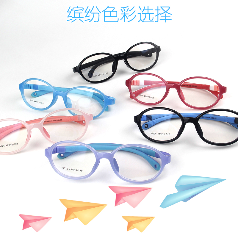 柔软光学全硅胶儿童眼镜框圆框配镜轻巧黑色粉色弹性学生镜架镜片