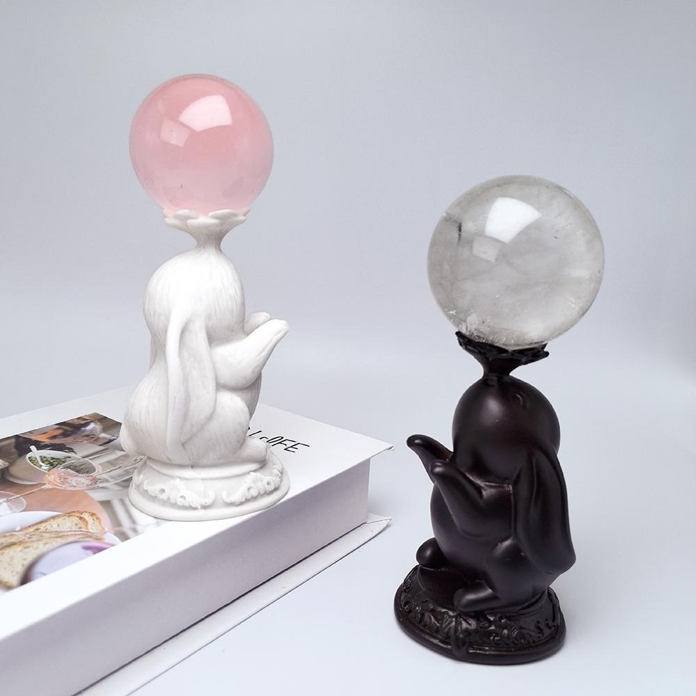 兔子水晶球底座展示支架大白兔创意树脂工艺品桌面摆件
