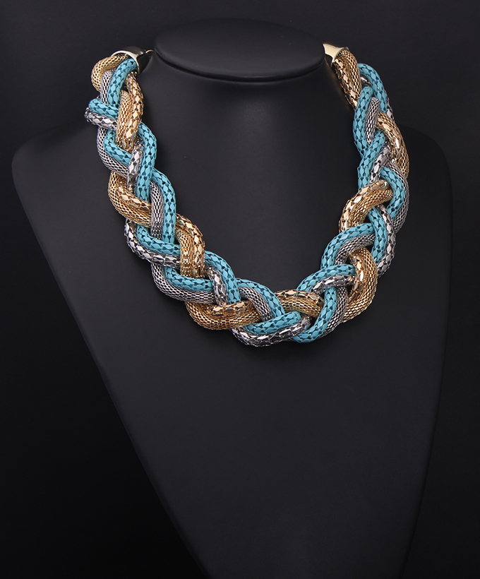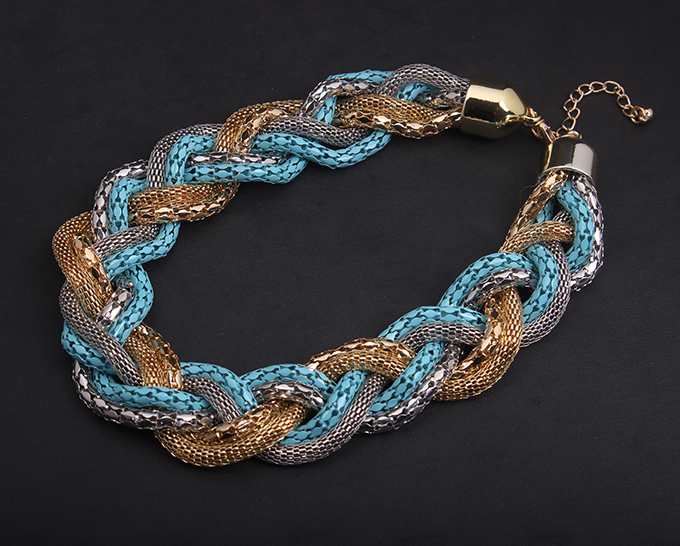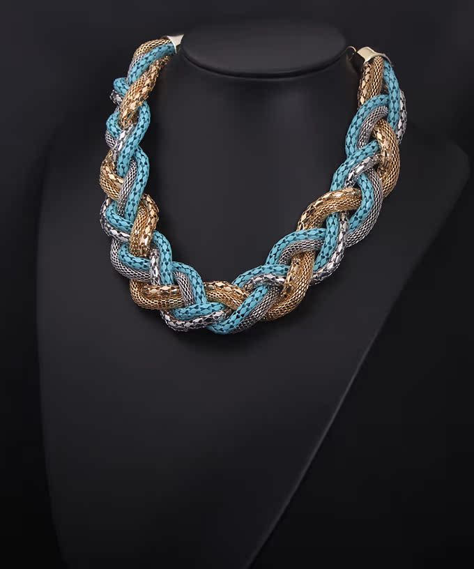 欧美大牌款 彩蓝色编织多层夸张项链短款锁骨麻花女韩国配饰品