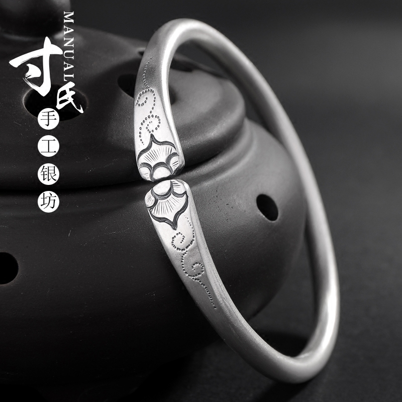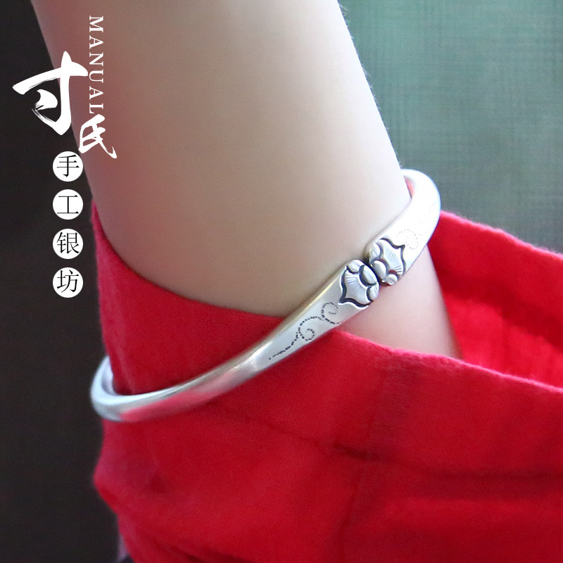 寸银坊 手工全新爆款999银手镯手工银复古女款简约国风银镯.匠心