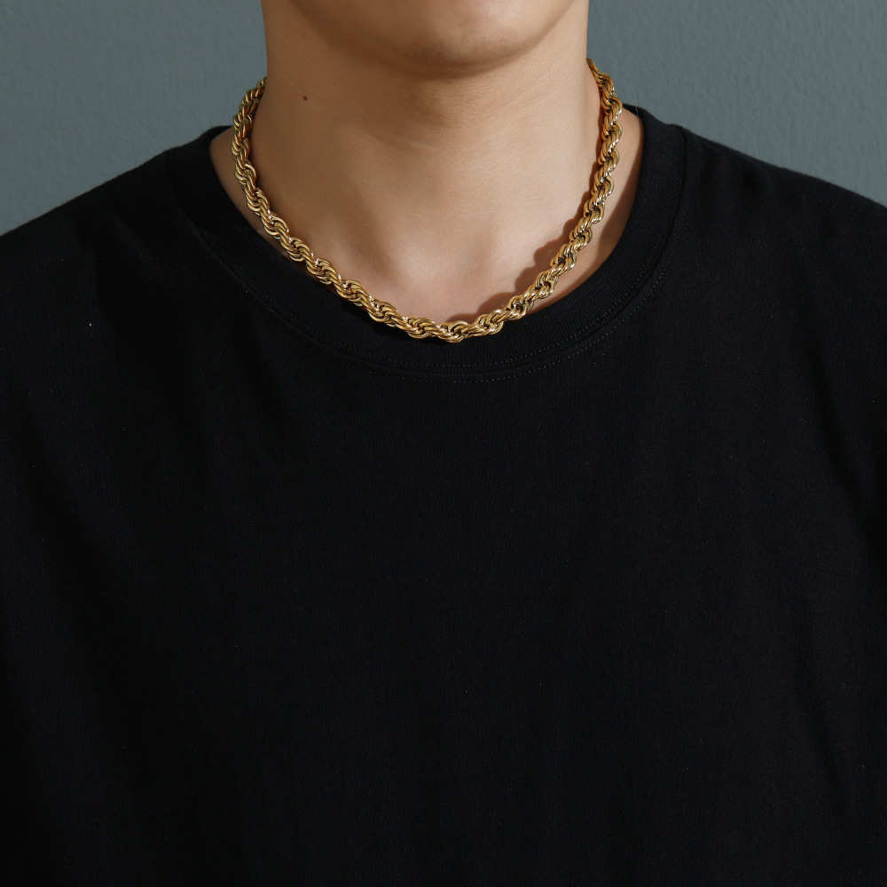 欧美嘻哈风不锈钢项链男 8mm304不锈钢麻花链 真空电镀跨境货源