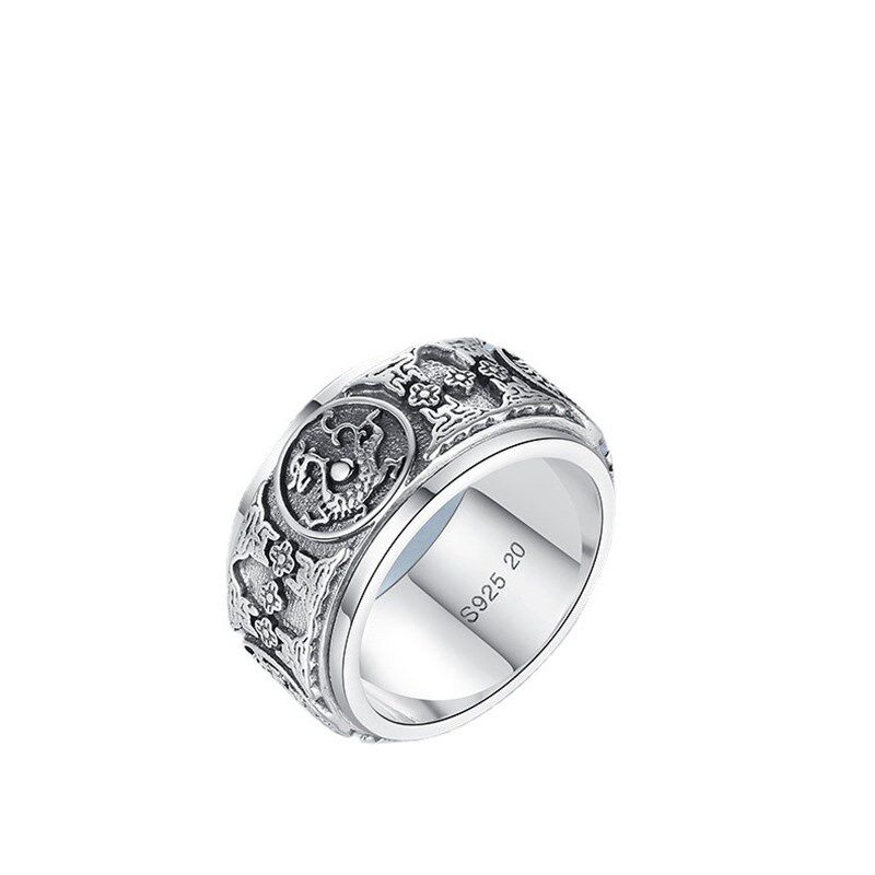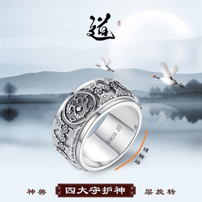 925足银四神兽戒指男士霸气复古个E性时尚单身潮人宽版扳指食指环