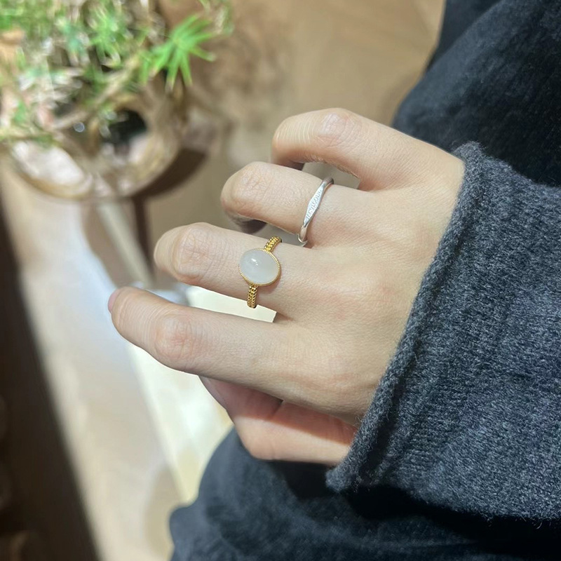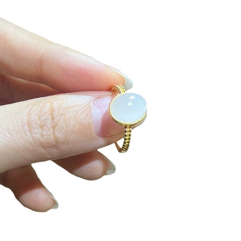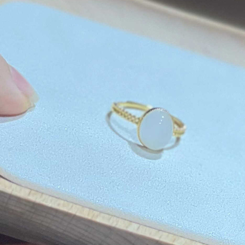 新款和田玉白玉蛋面镶嵌开口戒指女生礼物