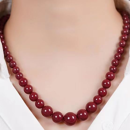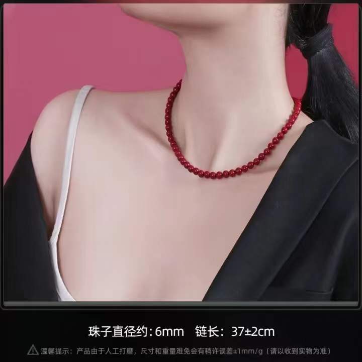 红色毛衣链朱砂真品老年人锁骨链高含量朱砂塔链红色时尚首饰