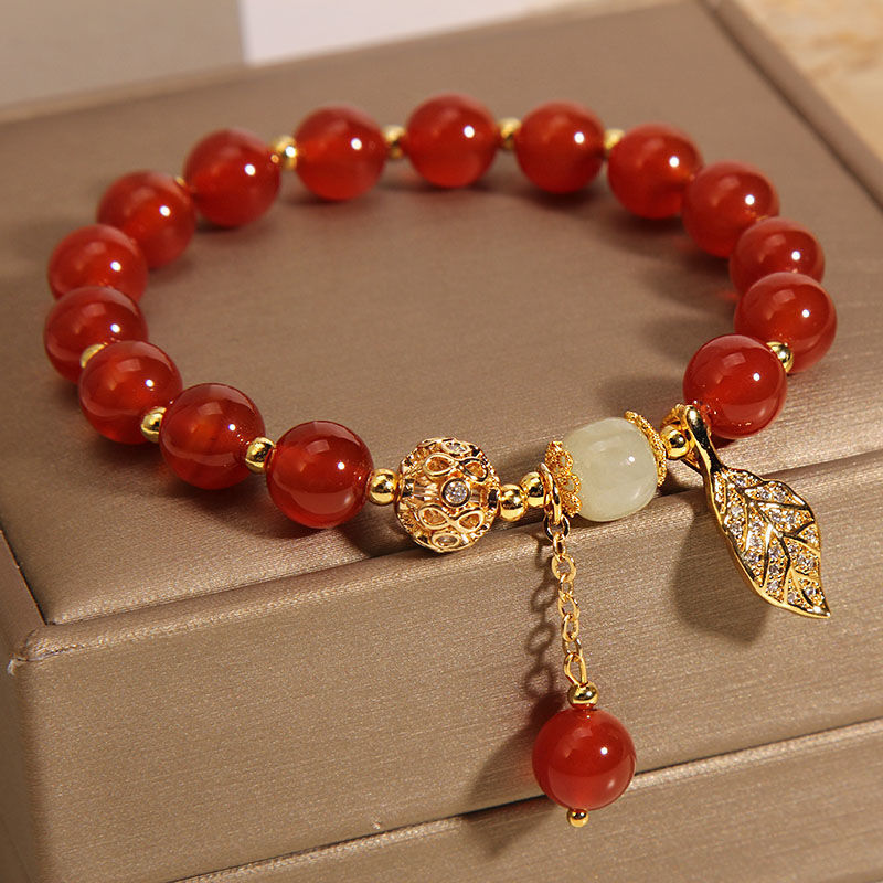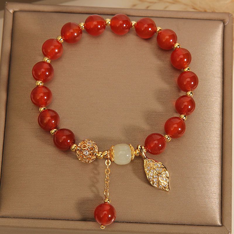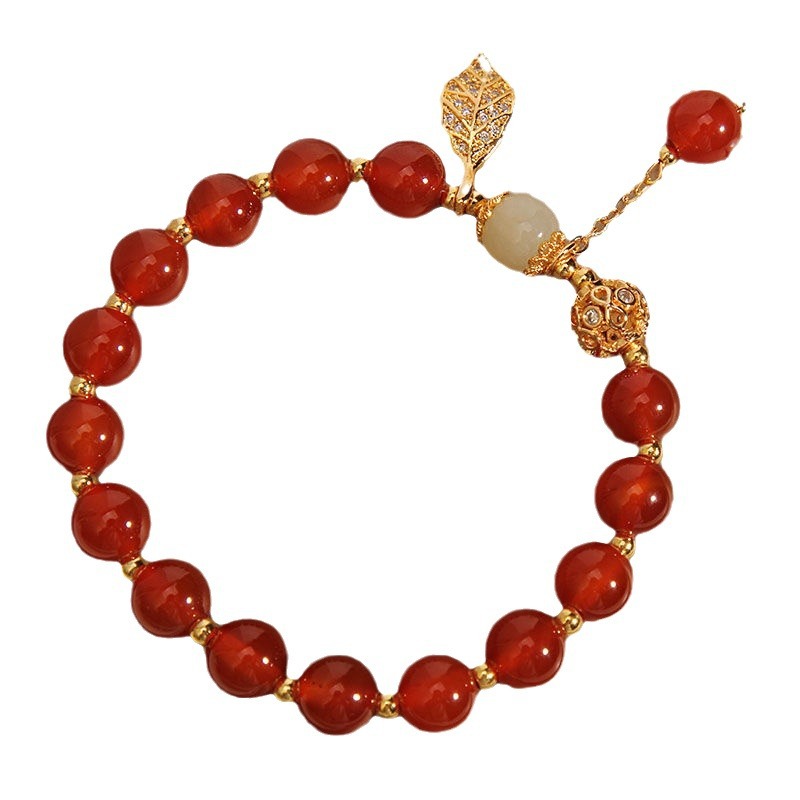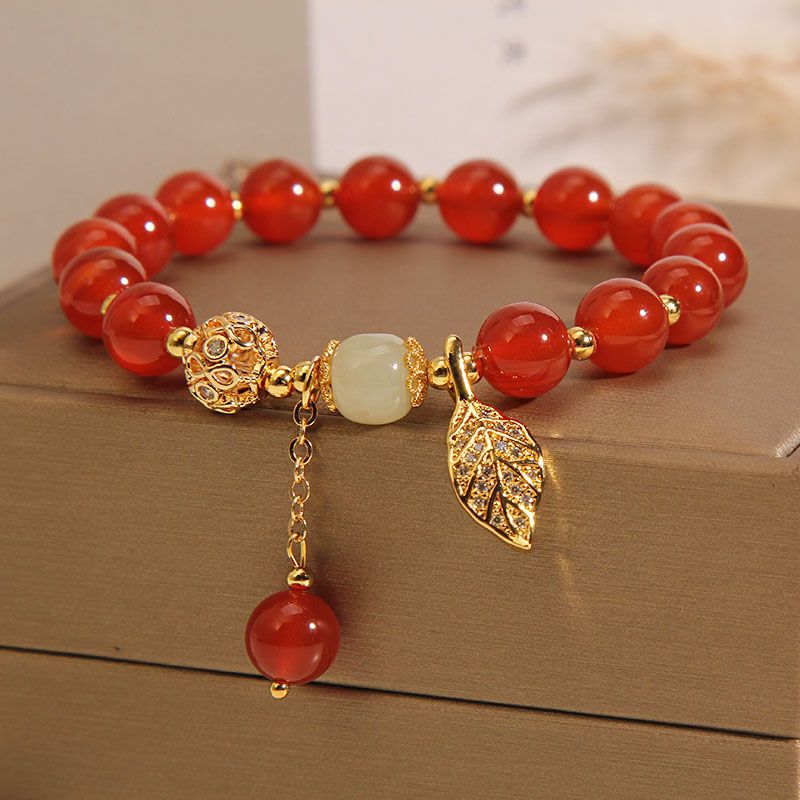 新款网红同款红玛瑙金枝玉叶手链女和田玉流苏手串小众节日送闺蜜