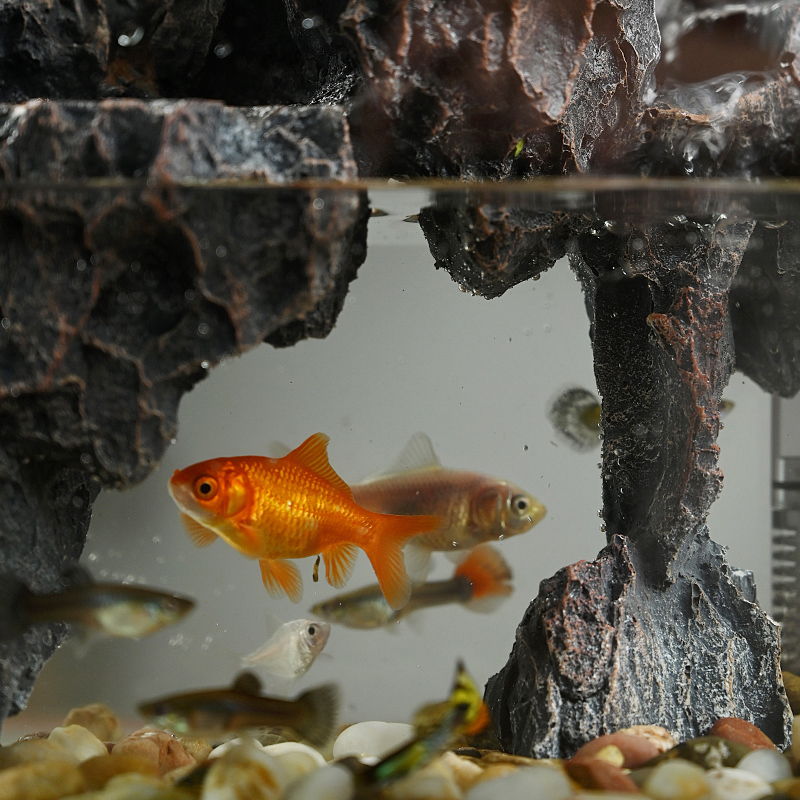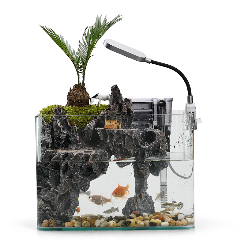 流水版鱼缸造景全套生态小型客厅桌面装饰摆件水草缸真植物水陆缸