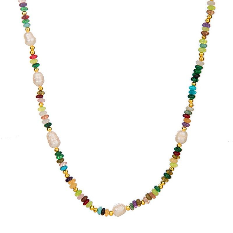 珍珠项链女多巴胺彩色串珠夏天叠戴高级感锁骨链轻奢小众颈链配饰