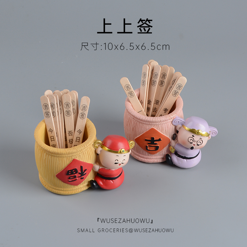 财神上上签可爱招财摆件新年祈福生日礼物笔筒家居装饰有趣好玩女