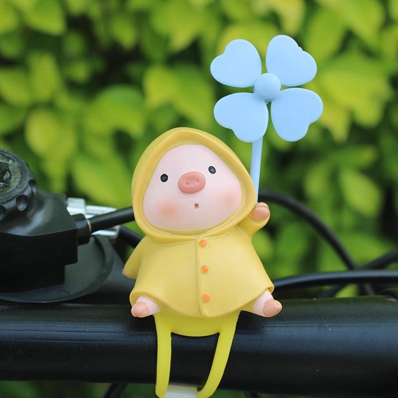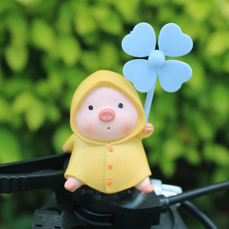 可爱雨衣小猪风车竹蜻蜓汽车载摆件自行车电瓶车电动摩托车装饰品