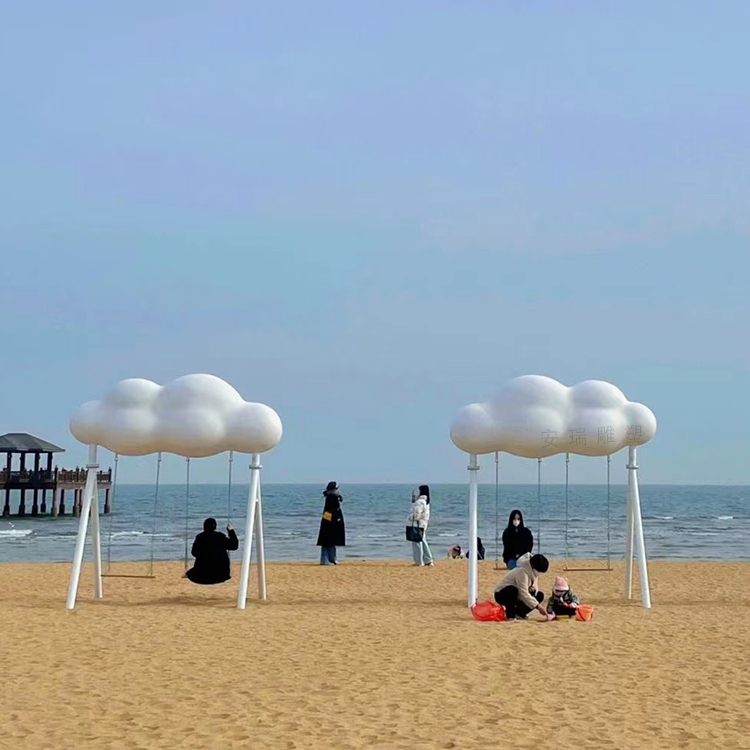 玻璃钢云朵雕塑 大型户外广场园林摆放铁艺抽象创意云朵秋千建筑