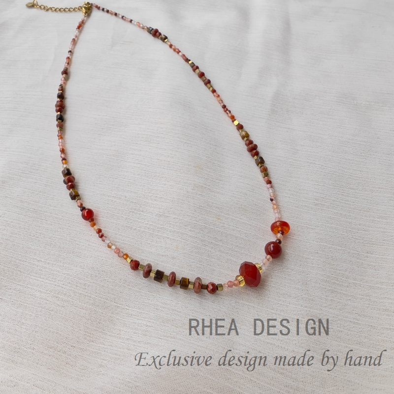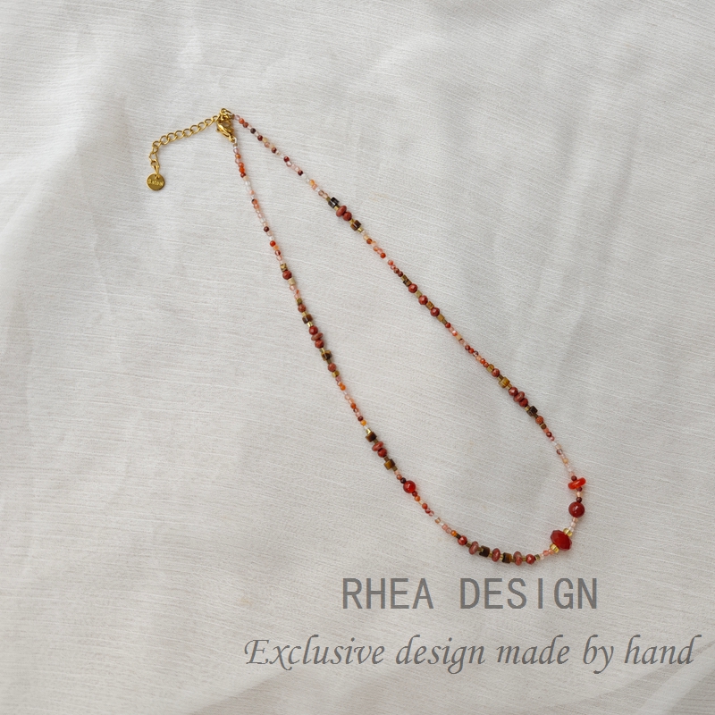 天然红玛瑙项链女新中式国风串珠配饰红色汉服锁骨链毛衣链