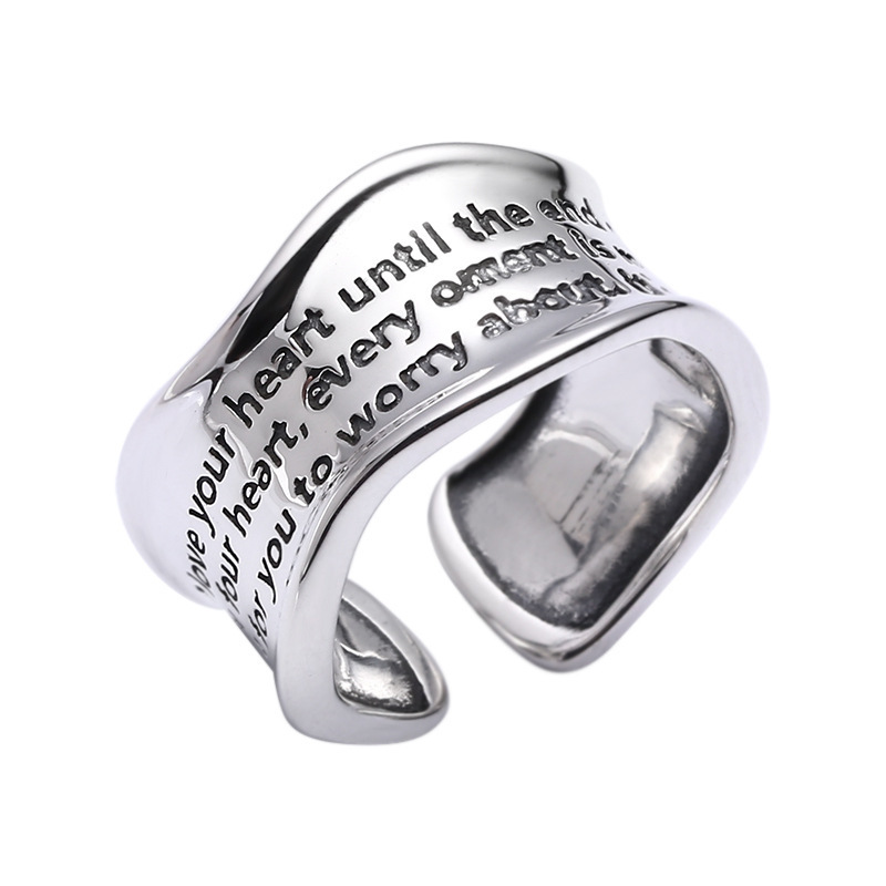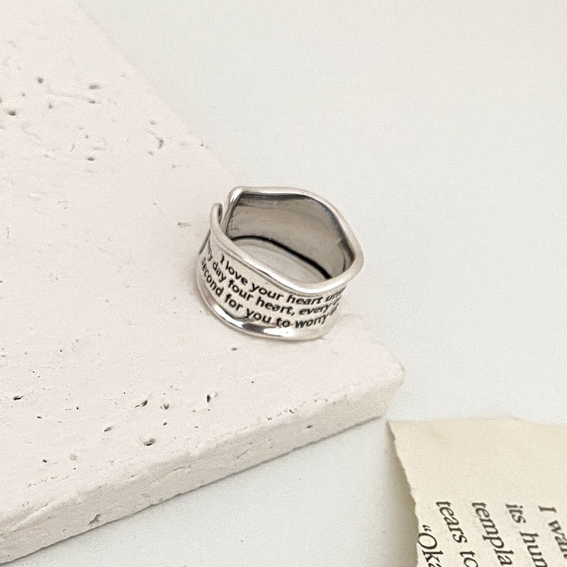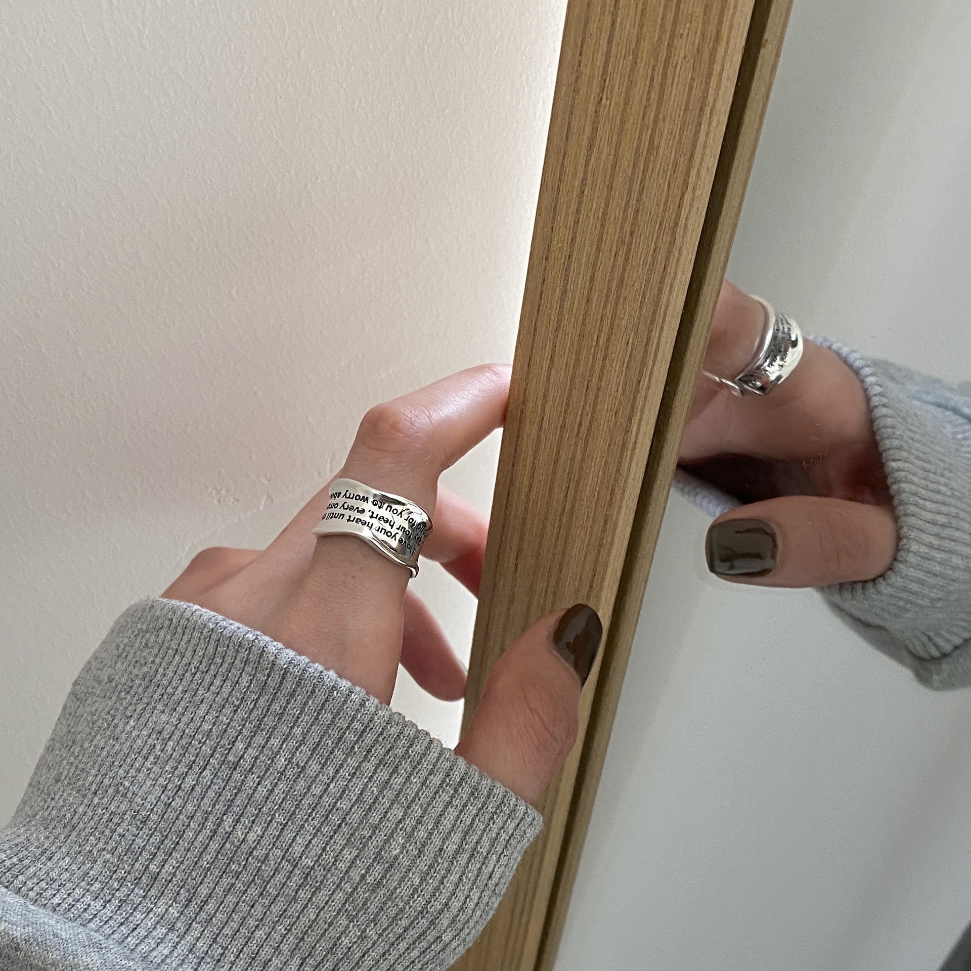 韩版字母波浪纹戒指女欧美复古时尚几何宽边嘻哈开口食指环