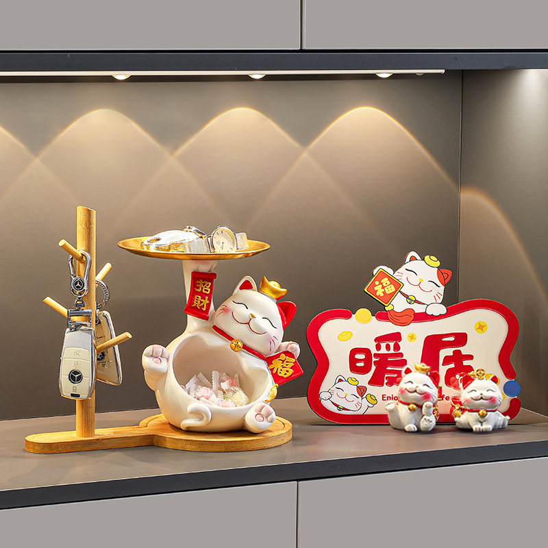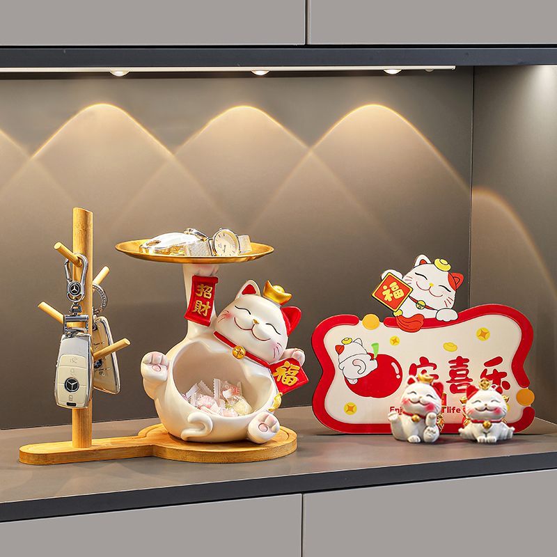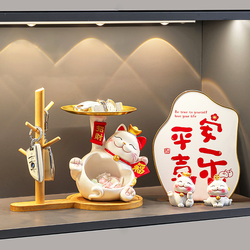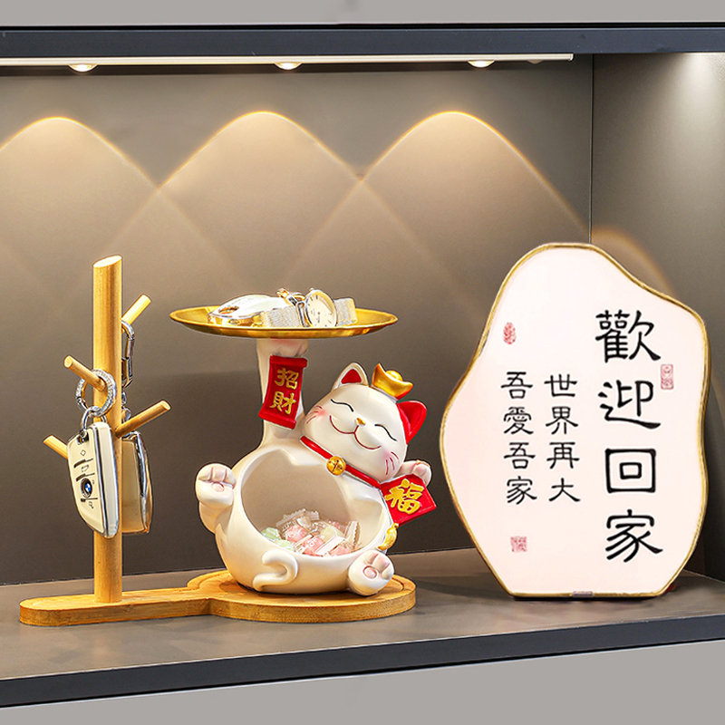 入户进门玄关摆件招财猫托盘钥匙收纳鞋柜客厅装饰品乔迁新居礼物
