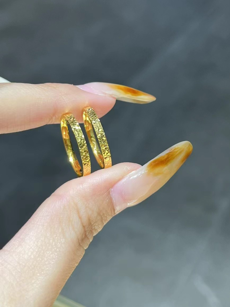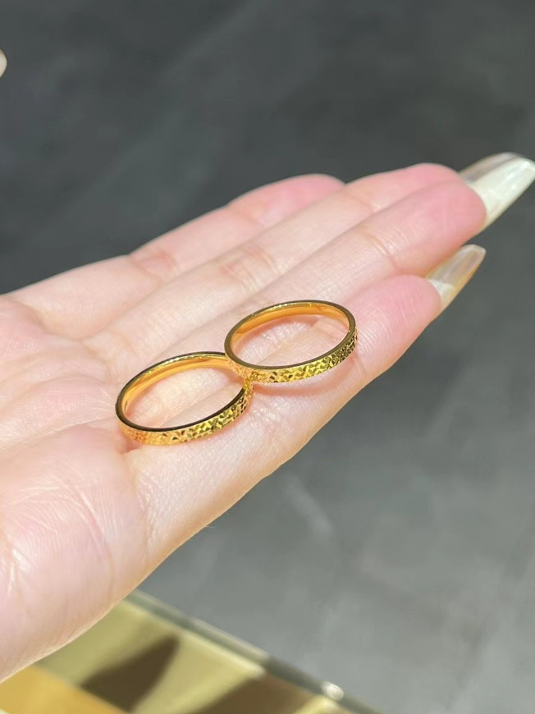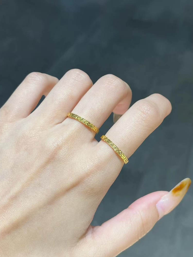 5G黄金碎碎金戒指女999足金碎冰冰素圈指环纯金食指戒送女友