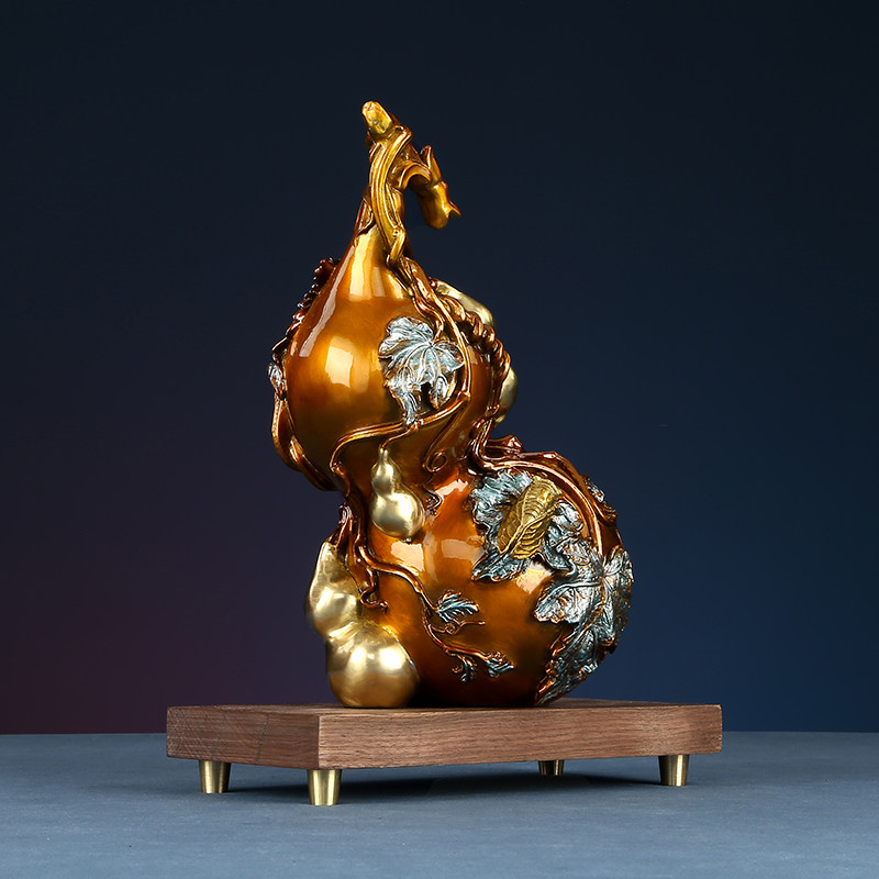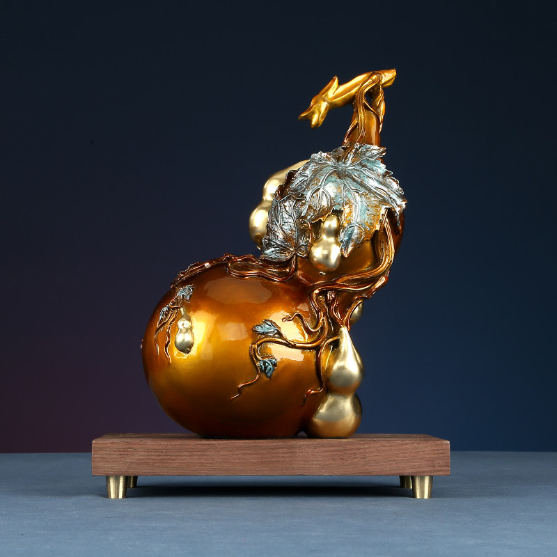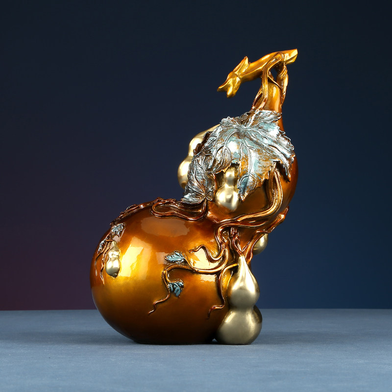 黄铜多子福禄葫芦摆件新中式家居客厅办公室装饰品开业乔迁礼品