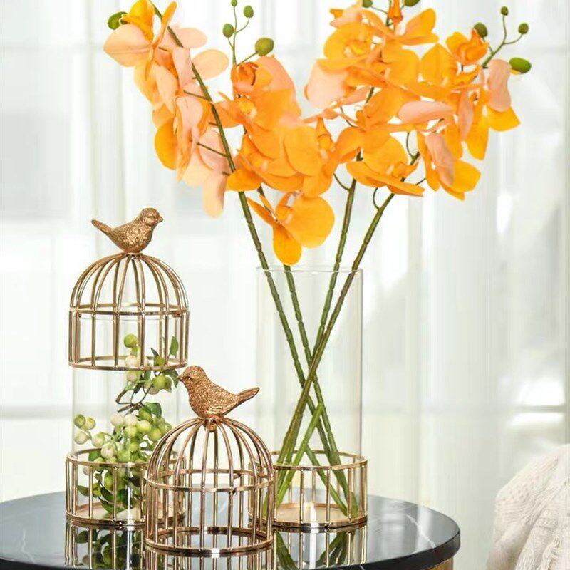 美式金属桌面花器样板房家t居装饰品灯笼鸟笼现代软装干花花插摆