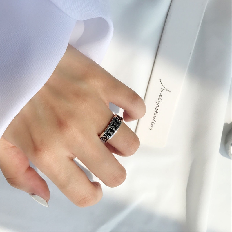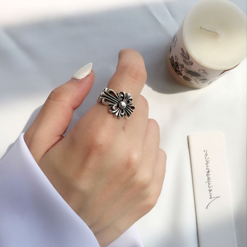 s925纯银复古泰银戒指韩国简约创意十字架开口男女潮人指环银饰品