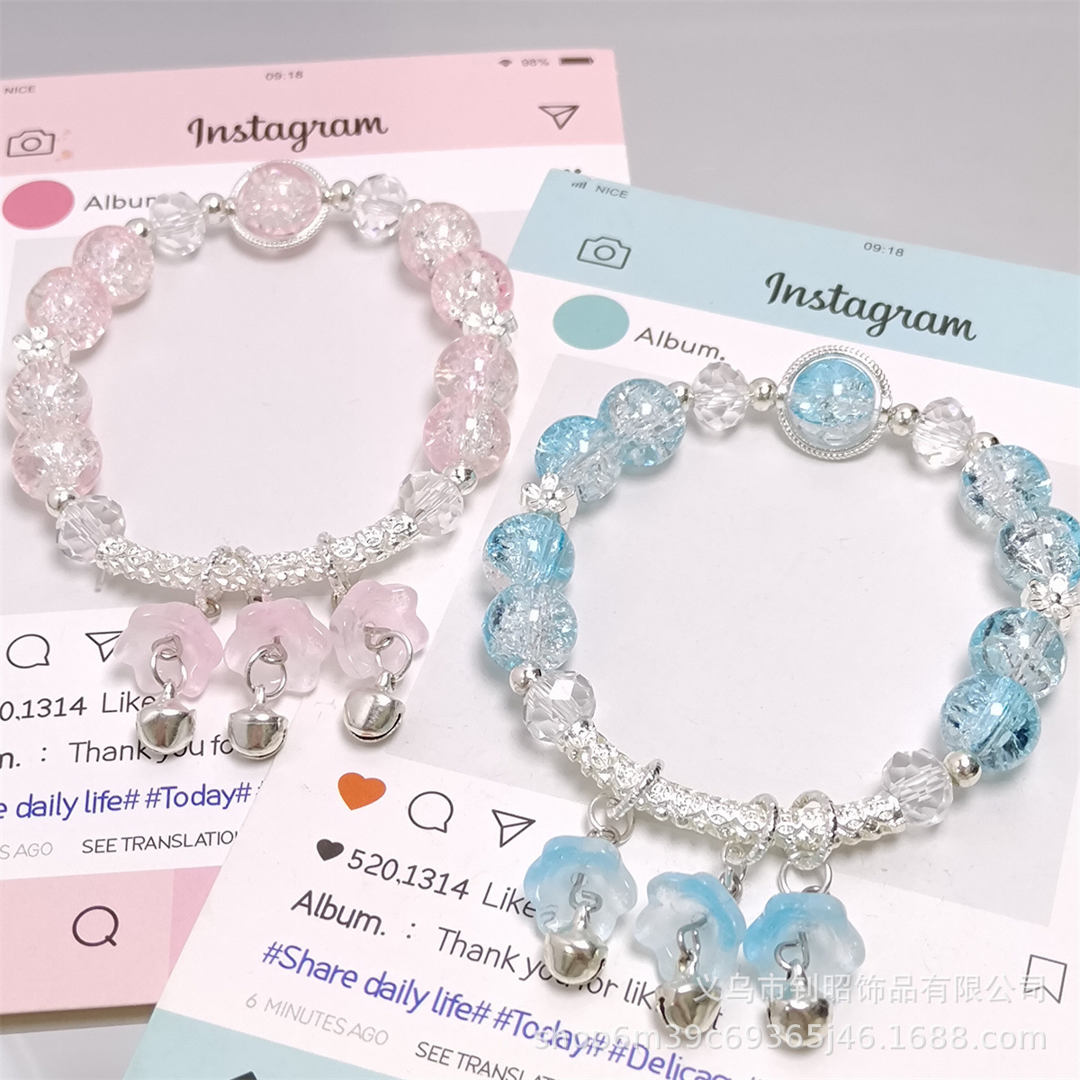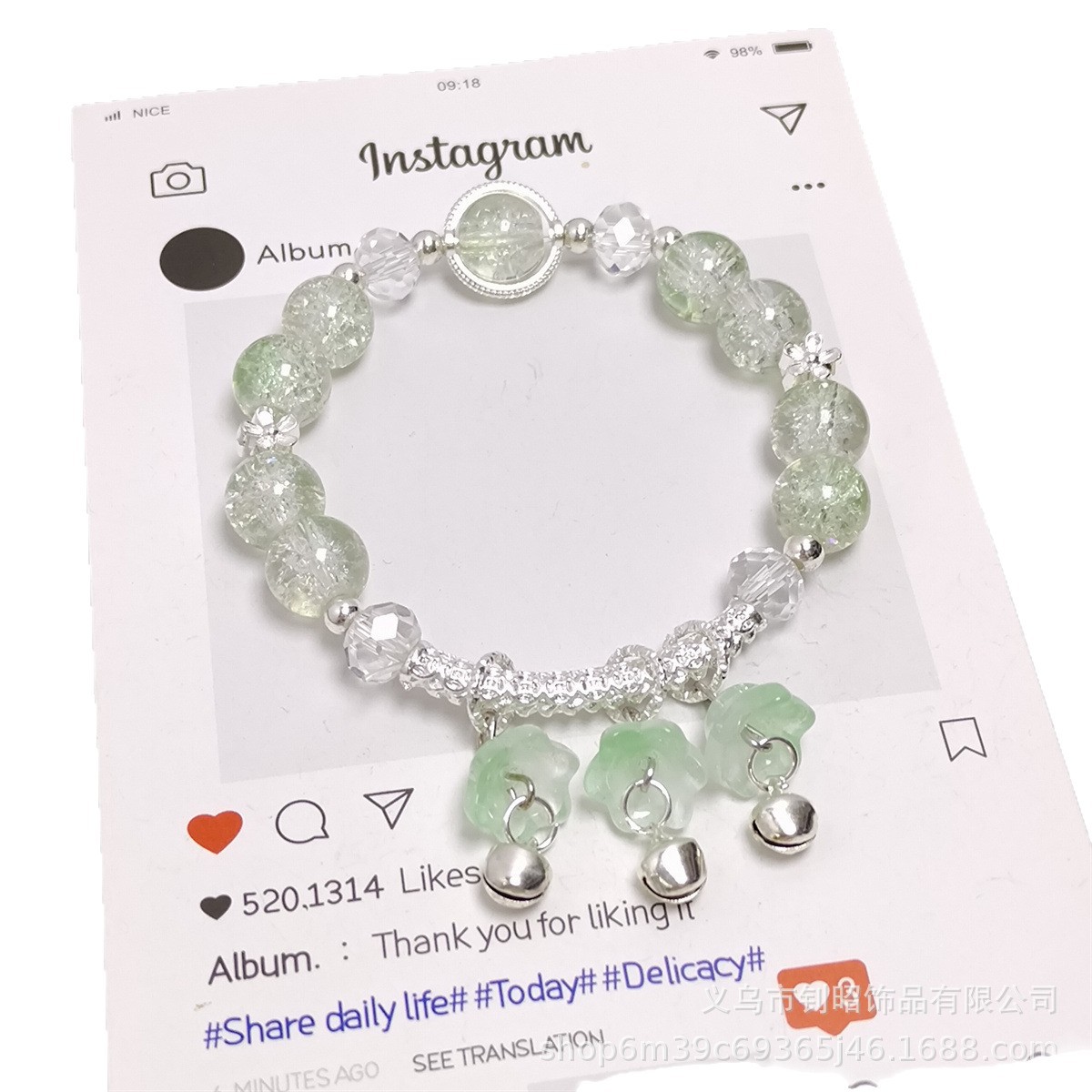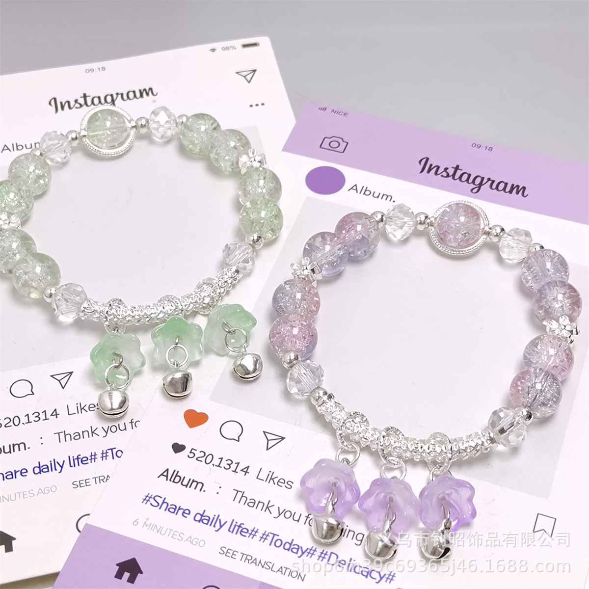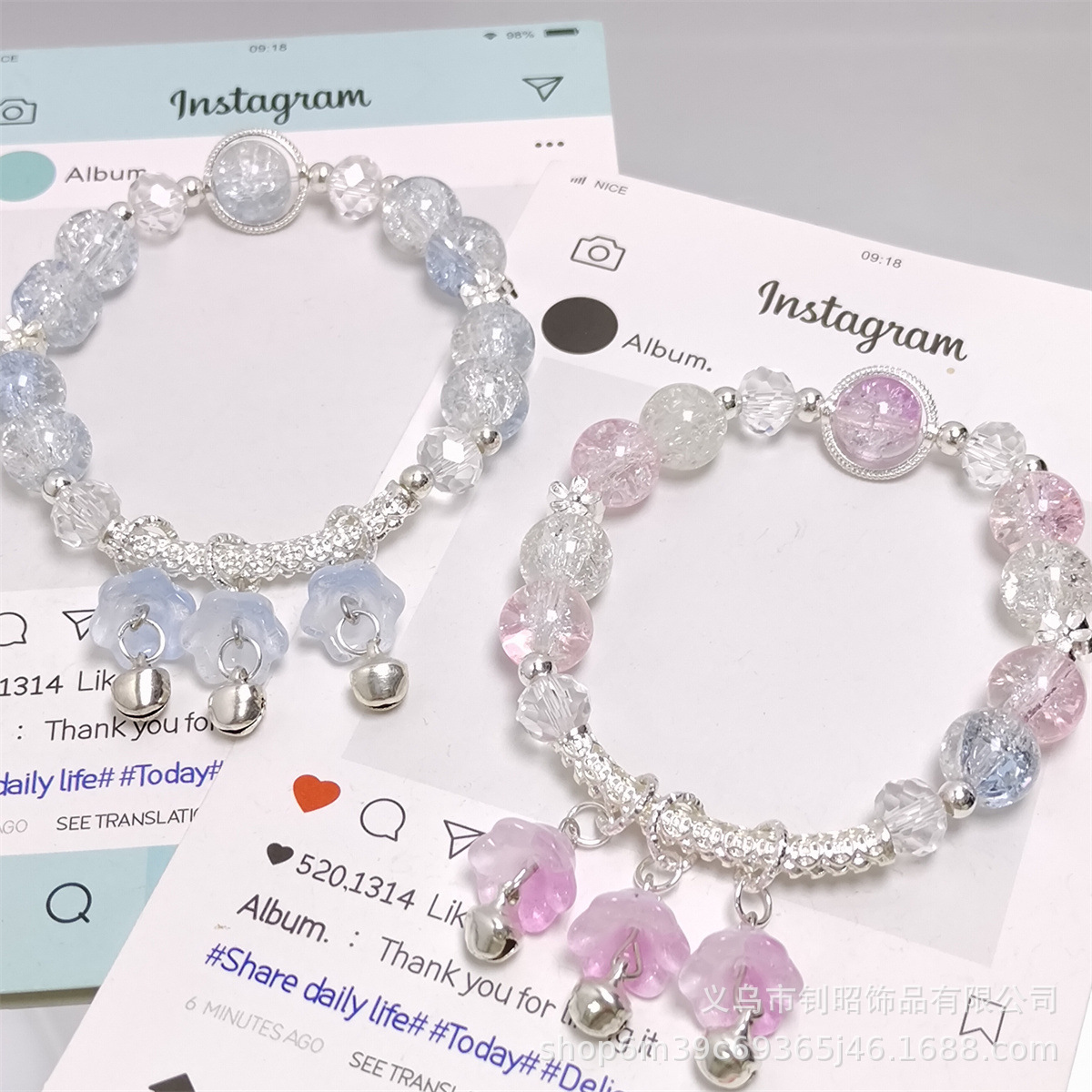 森系爆花水晶兰花铃铛手链学生女孩甜美简约百搭半镯手链厂家直销