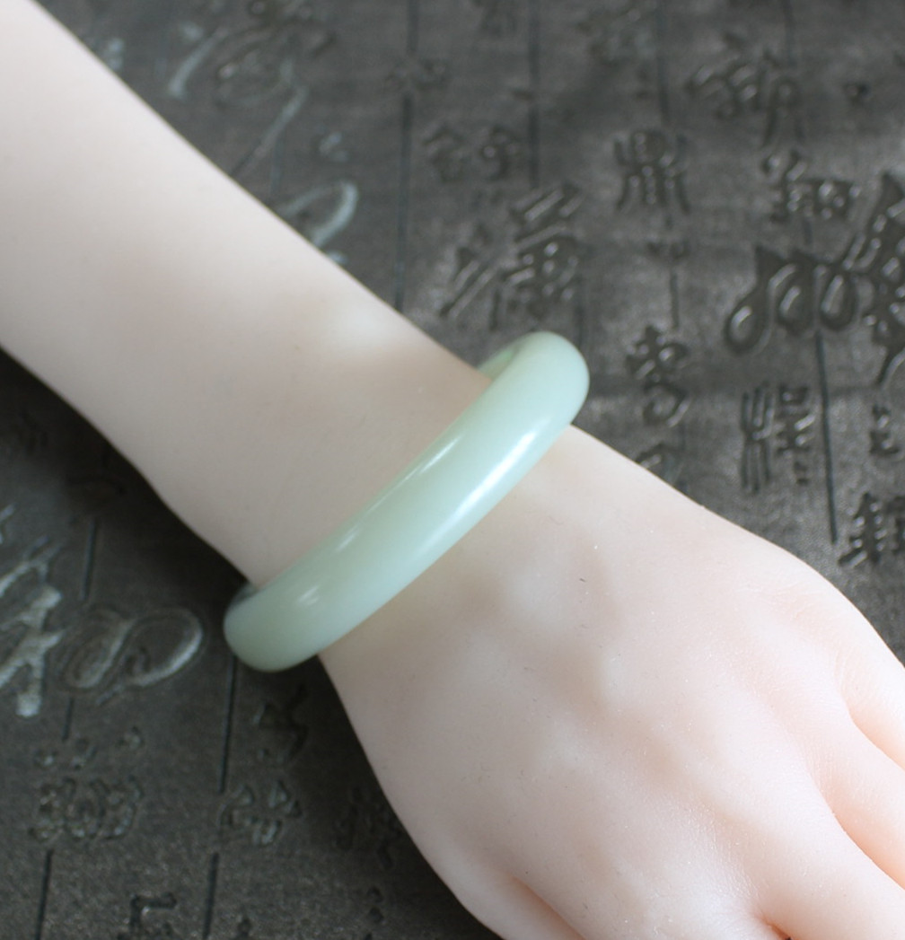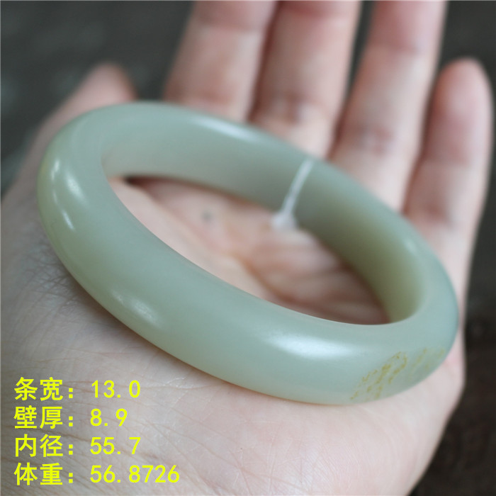 N颜色很浅老熟肉质 55.7越戴油润和田玉青白玉籽料留皮手镯 朕®