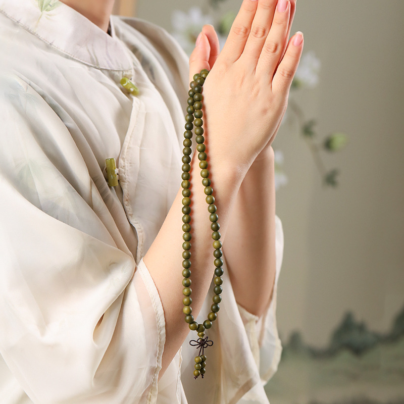 绿檀手串莲花女森系学生双圈手链佛珠手串檀香手串天然中国风佛珠