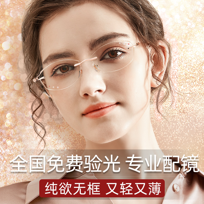 钻石切边无框近视眼镜女可配有度数超轻防蓝光显脸小无边框ins风