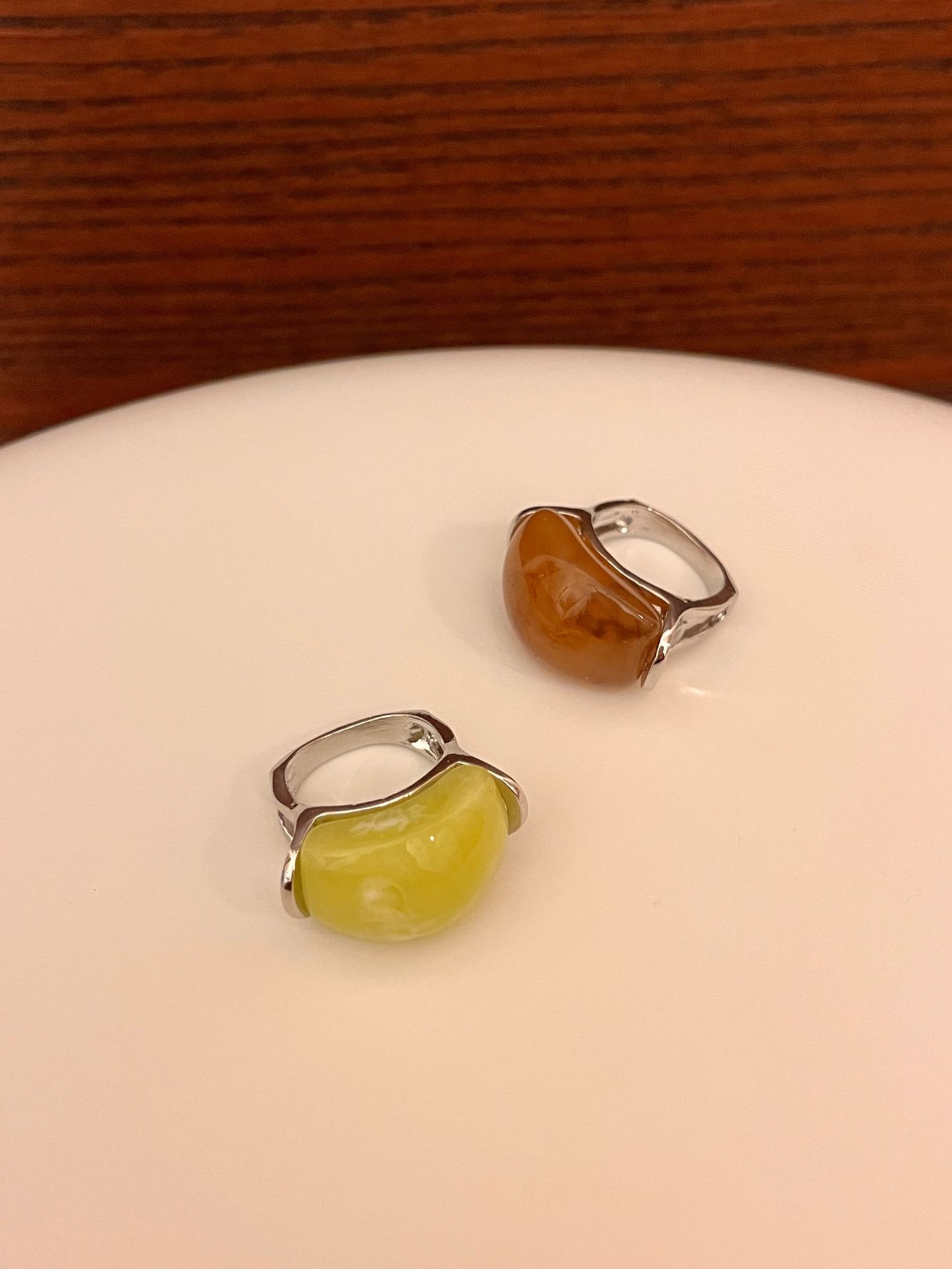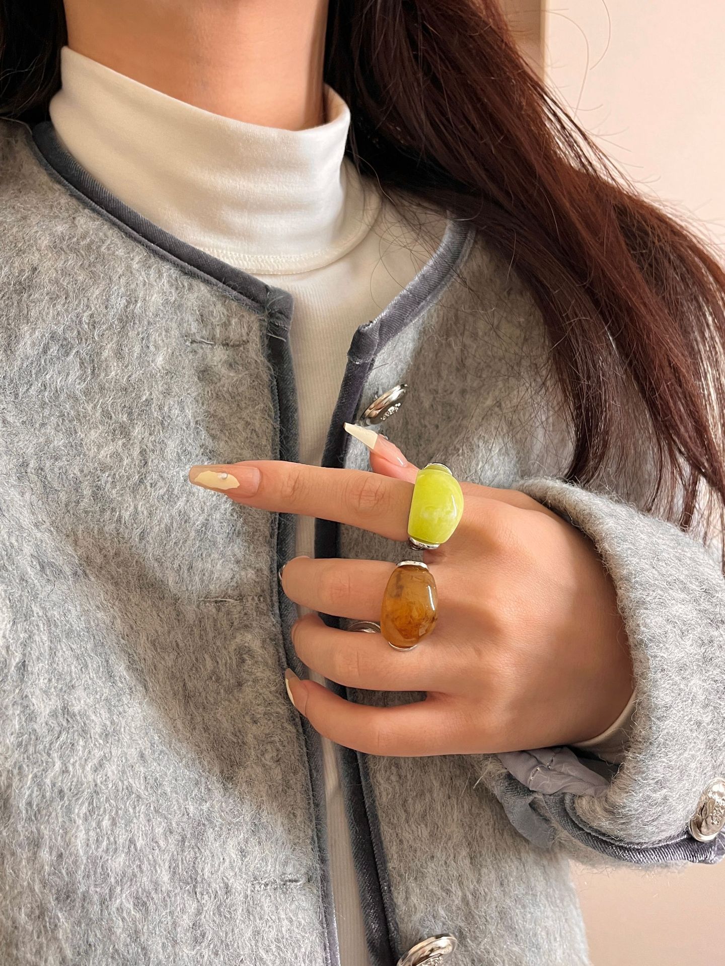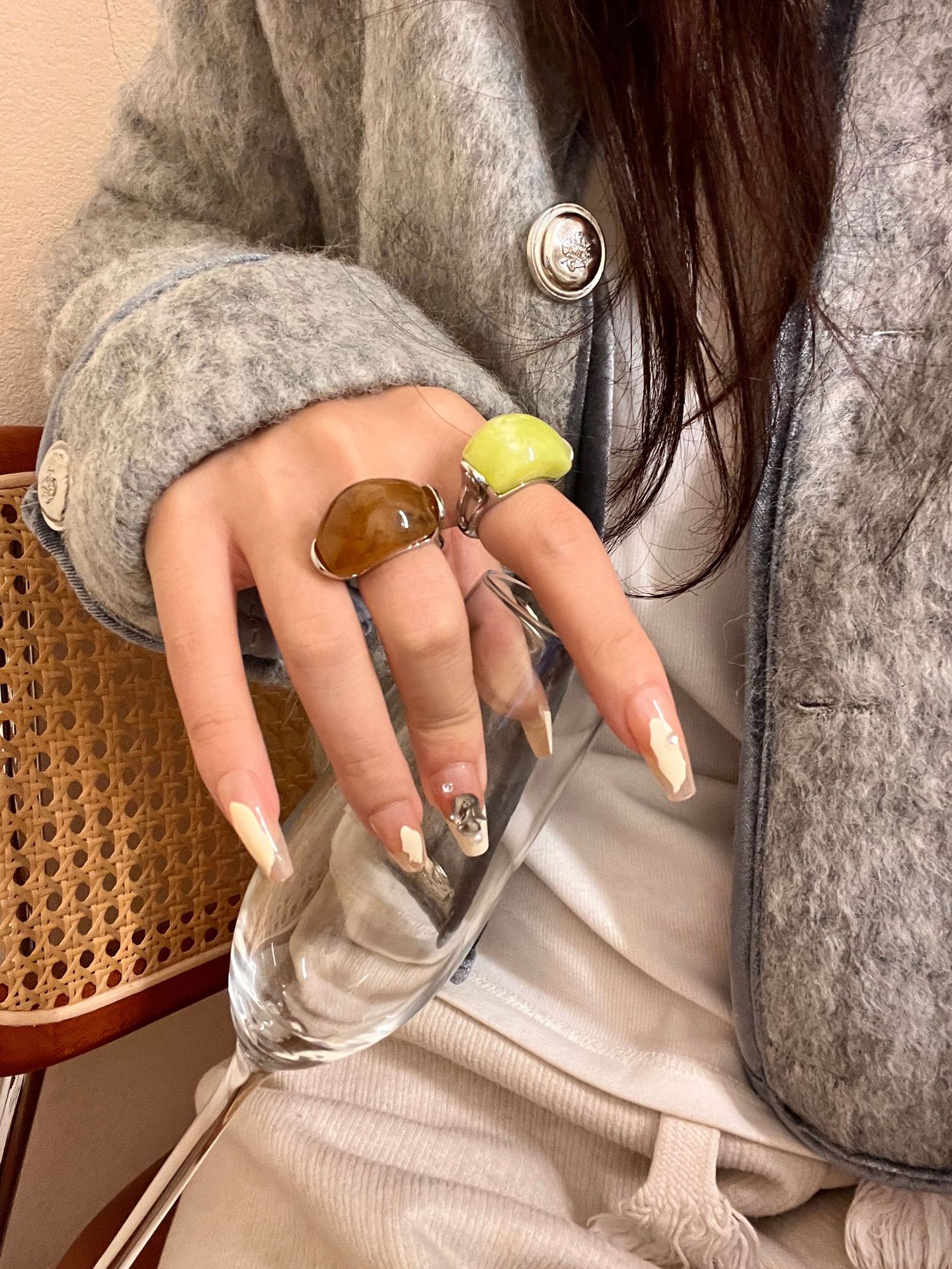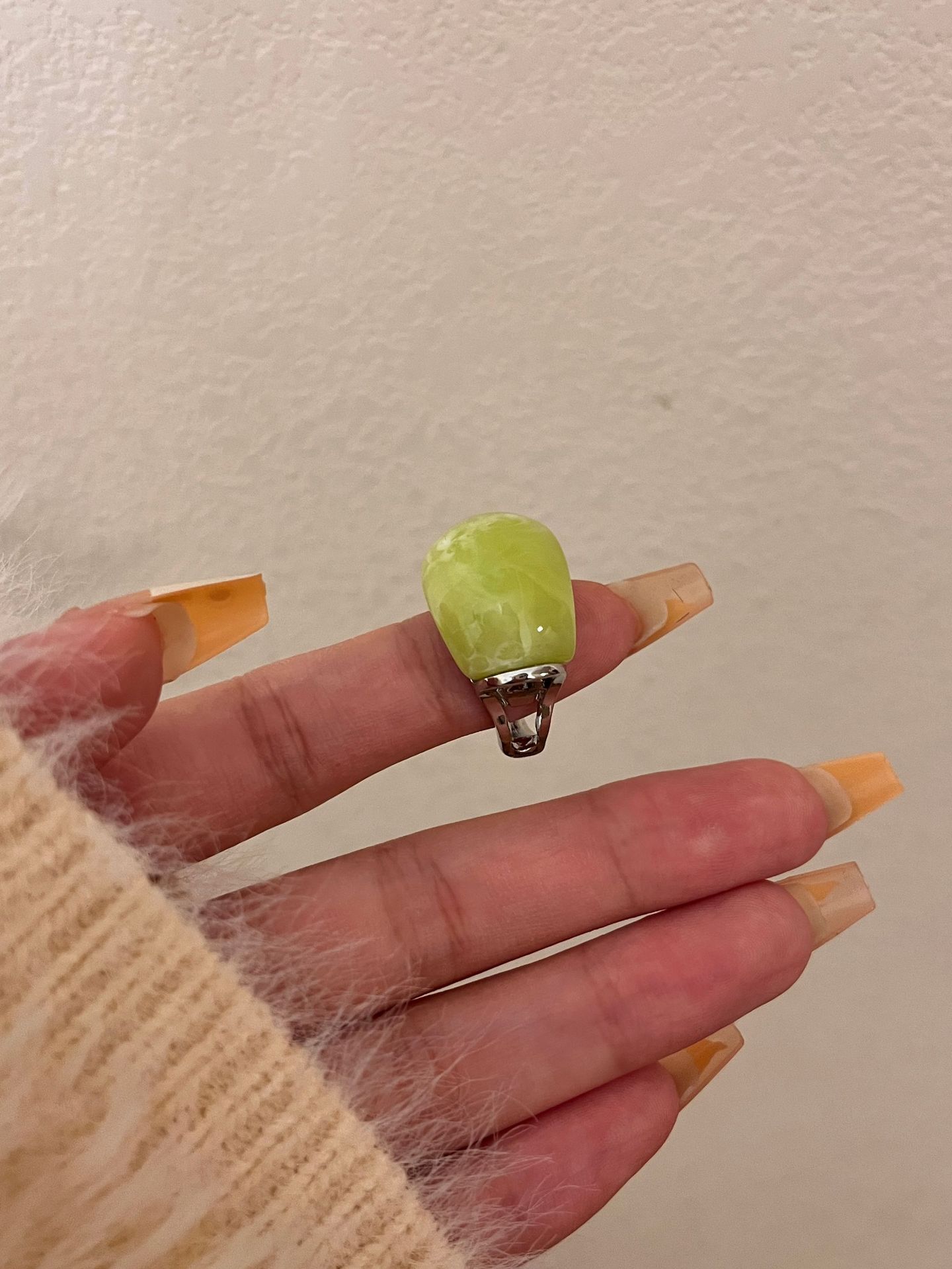 2023年秋冬ashui同款绿色葡萄戒指 夸张时髦巨显白银色宽版指环