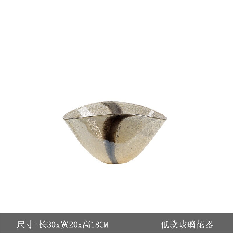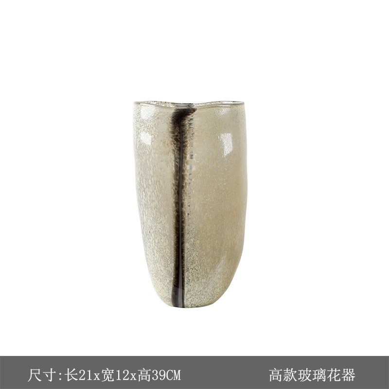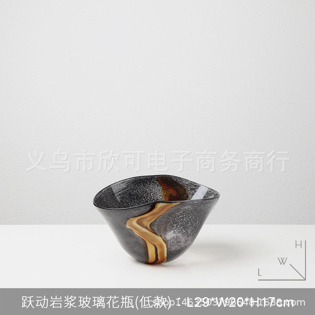 北欧轻奢黑色黄纹琉璃花瓶客厅样板房现代装饰品客厅插花花器摆件