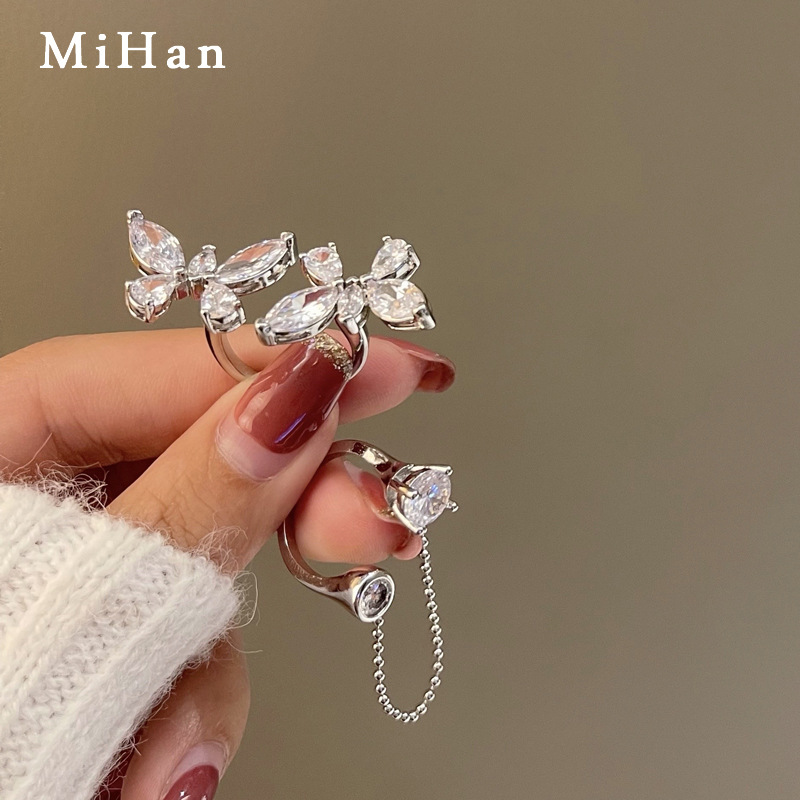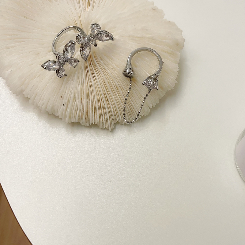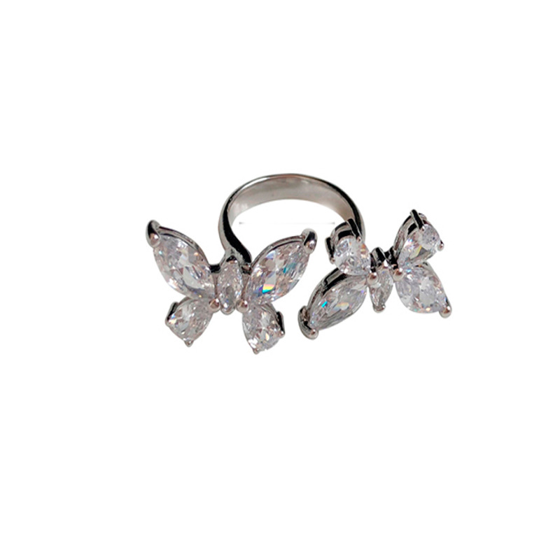 2023新款韩国个性仙气森系镶钻蝴蝶戒指女时尚链条开口指环食指戒