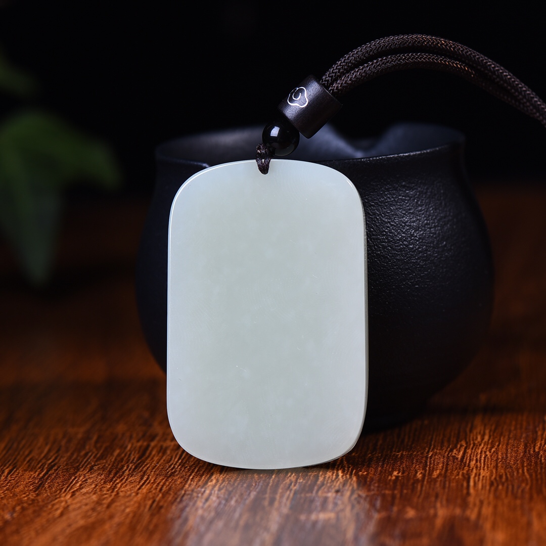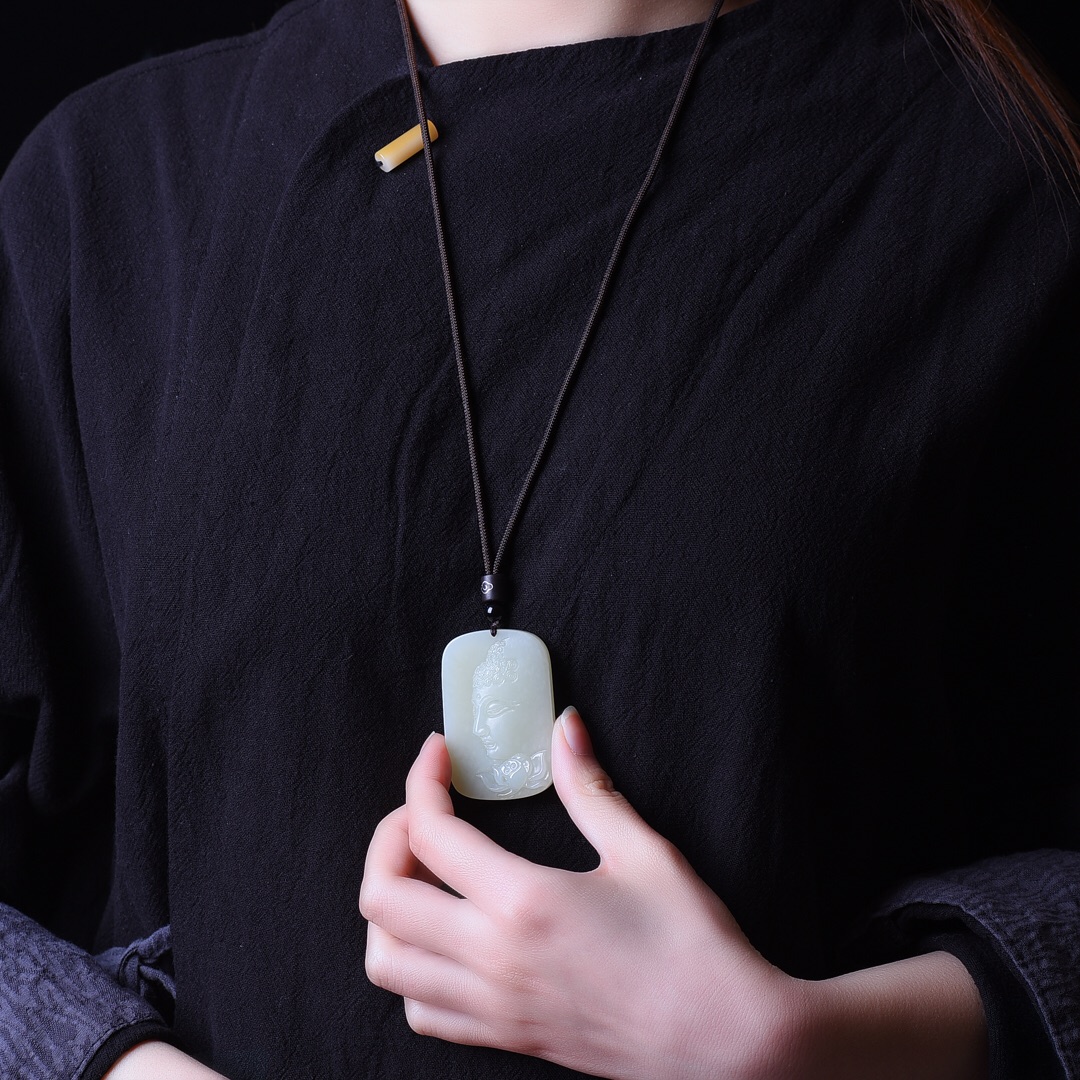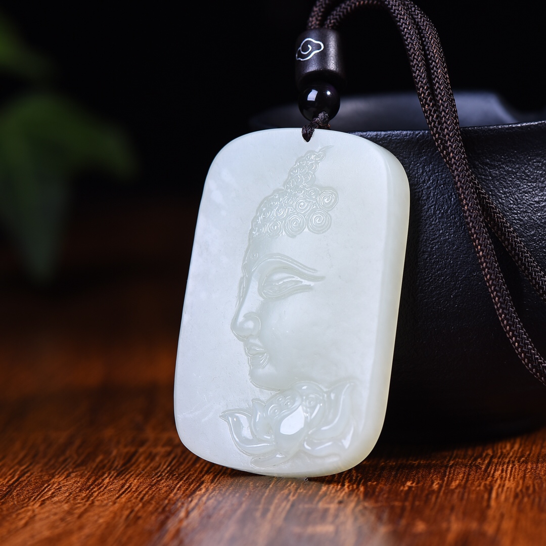 新疆和田玉羊脂玉白玉青白玉侧面佛祖平安牌吊坠男女挂件玉坠玉佩