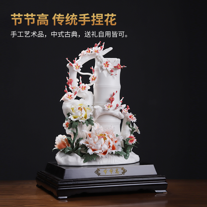 新中式陶瓷瓷花《节节高》手工艺术品仿真花家居客厅书房装饰摆件