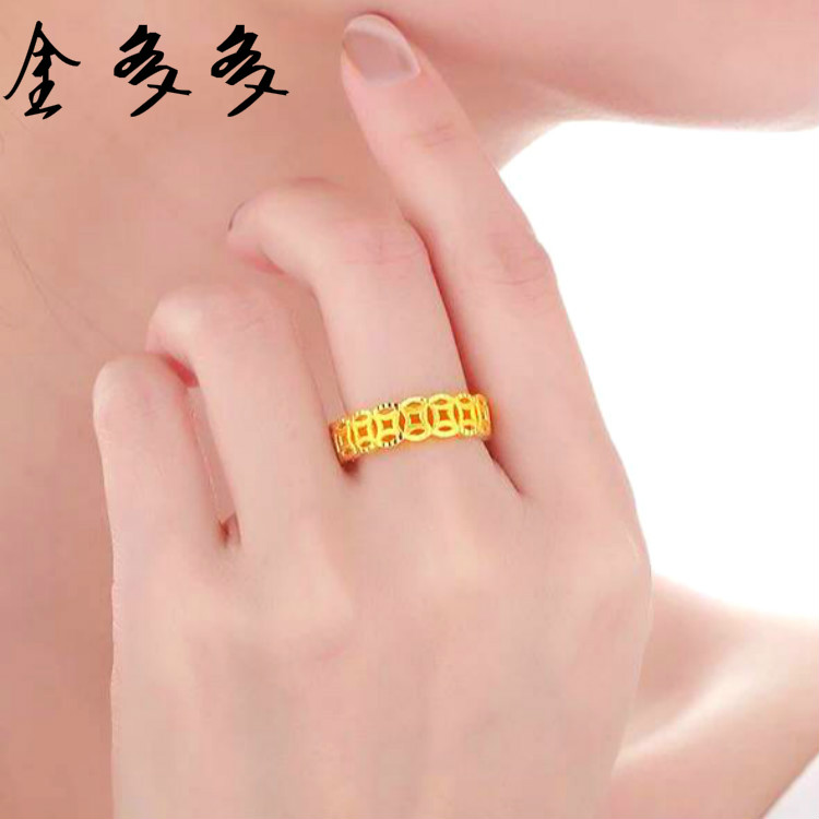 新款越南沙金招财铜钱情侣款戒指环不掉色仿真黄金男女镀金欧币金