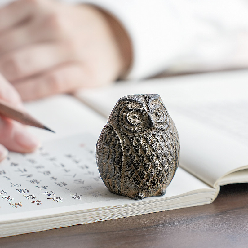 铸铁猫头鹰 进口南部铁器文镇摆件 日本原产书镇镇纸桌面书房文玩