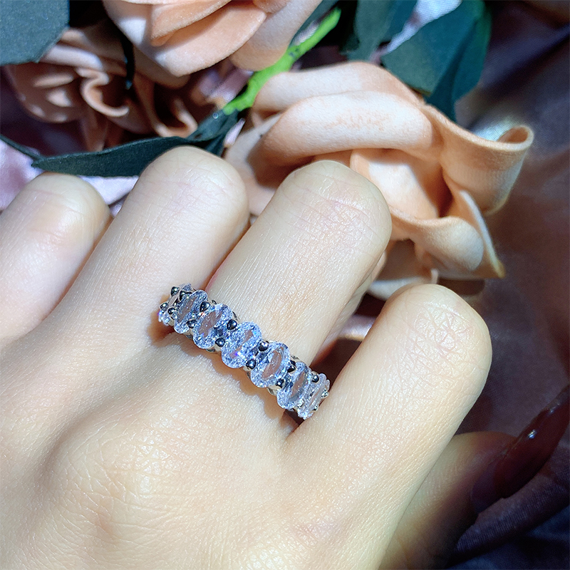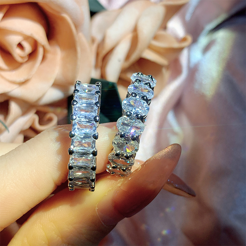Young祖母绿钻戒莫桑石食指排钻戒指女莫桑钻时尚个性ins欧美网红