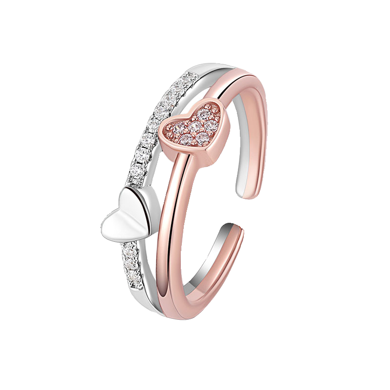 GTM双层爱心戒指镶钻925纯银时尚简约个性开口食指戒心形情侣对戒