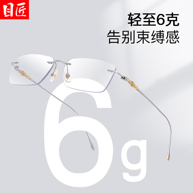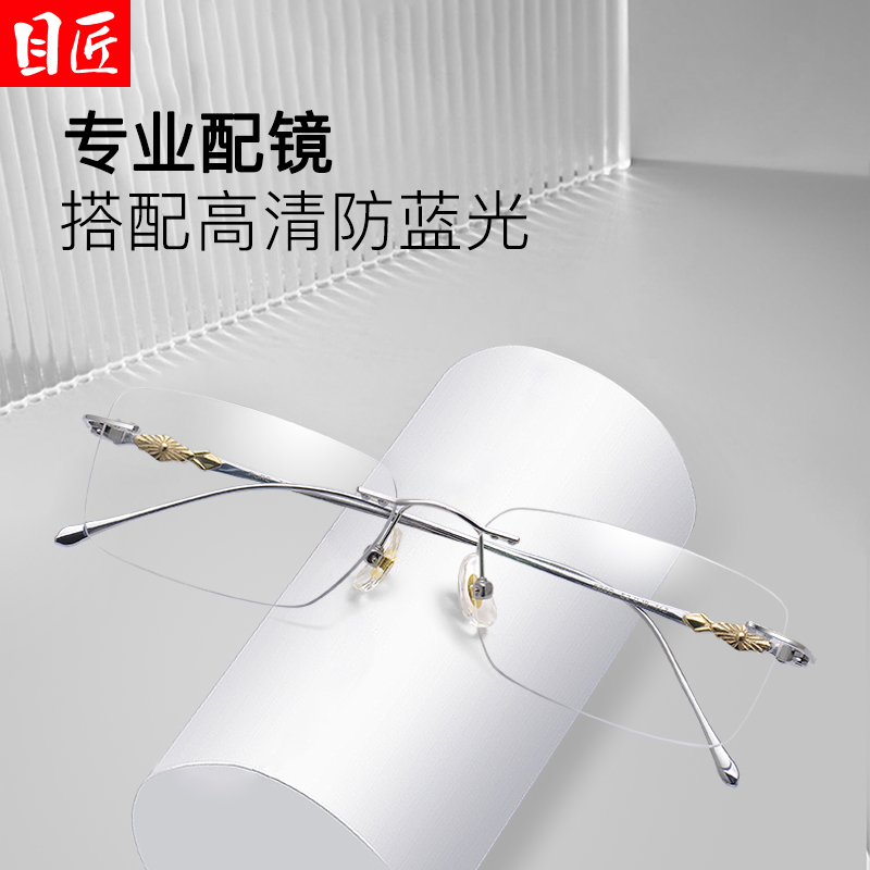 超轻纯钛无框近视眼镜框男款可配度数方形大框大脸无边框眼睛镜架
