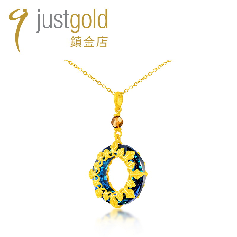 justgold镇金店冰彩花藤足金黄金吊坠1528241Y