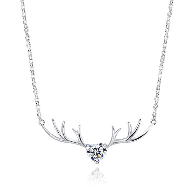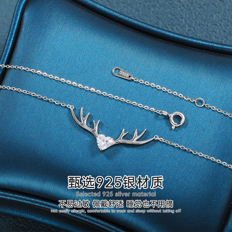 一路有你鹿角项链S925纯银项饰韩式可爱圣诞麋鹿角吊坠锁骨链