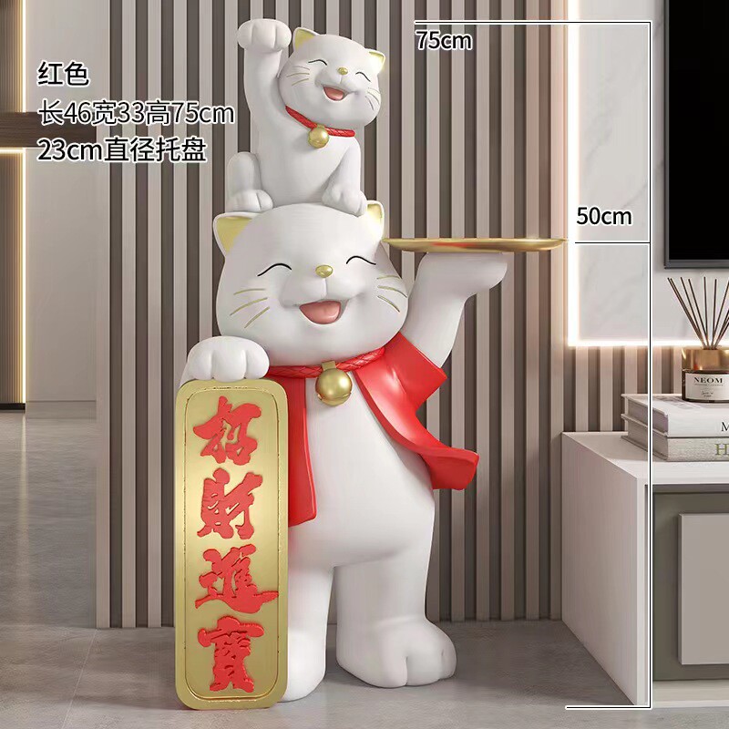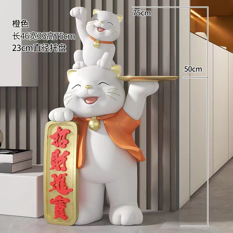 国潮招财进宝亲子猫创意大型落地摆件酒店门店会所大厅家居装饰品